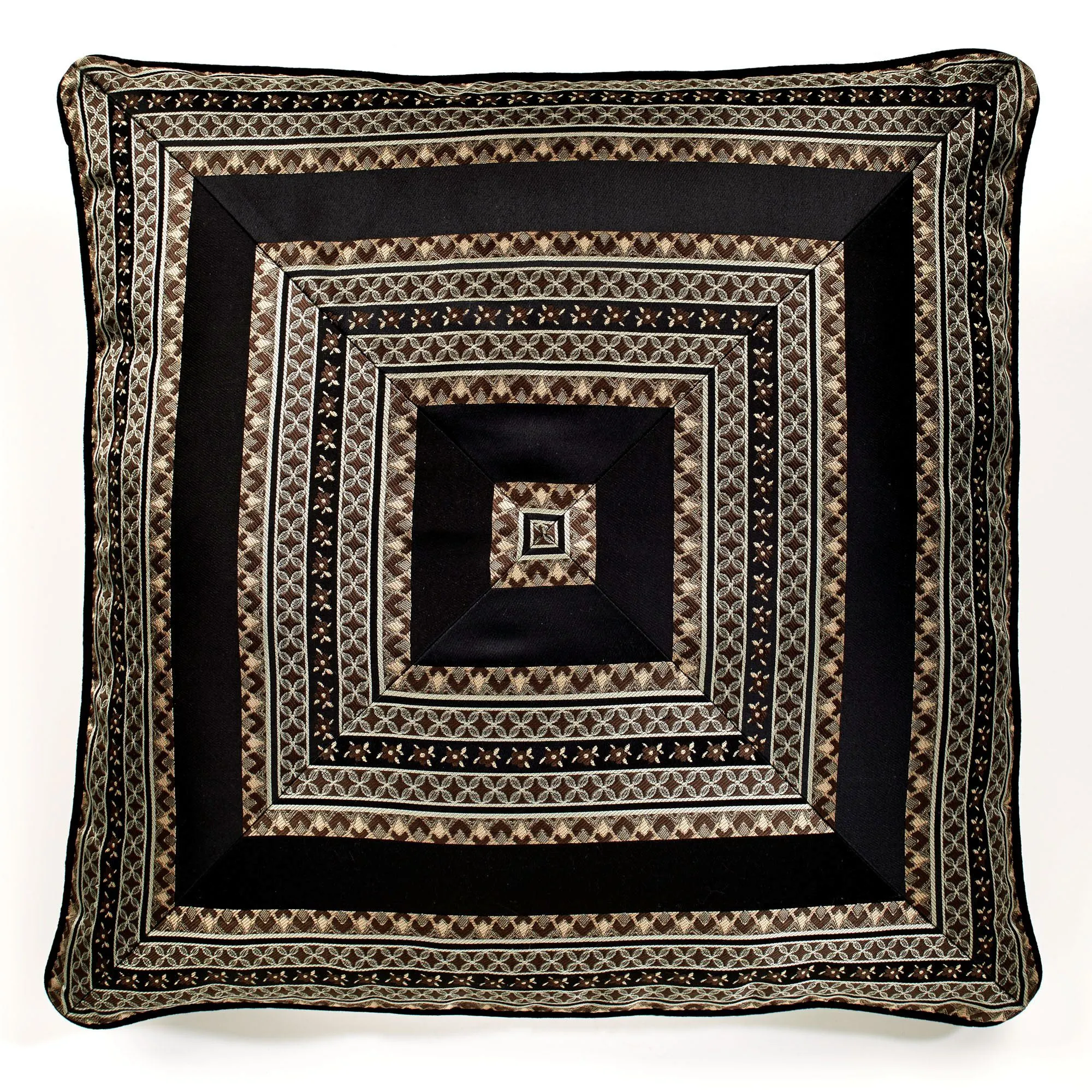 Piped, mitred European Sham has a woven-jacquard stripe motif and a zipper closure; sham is reversible to solid black velveteen.