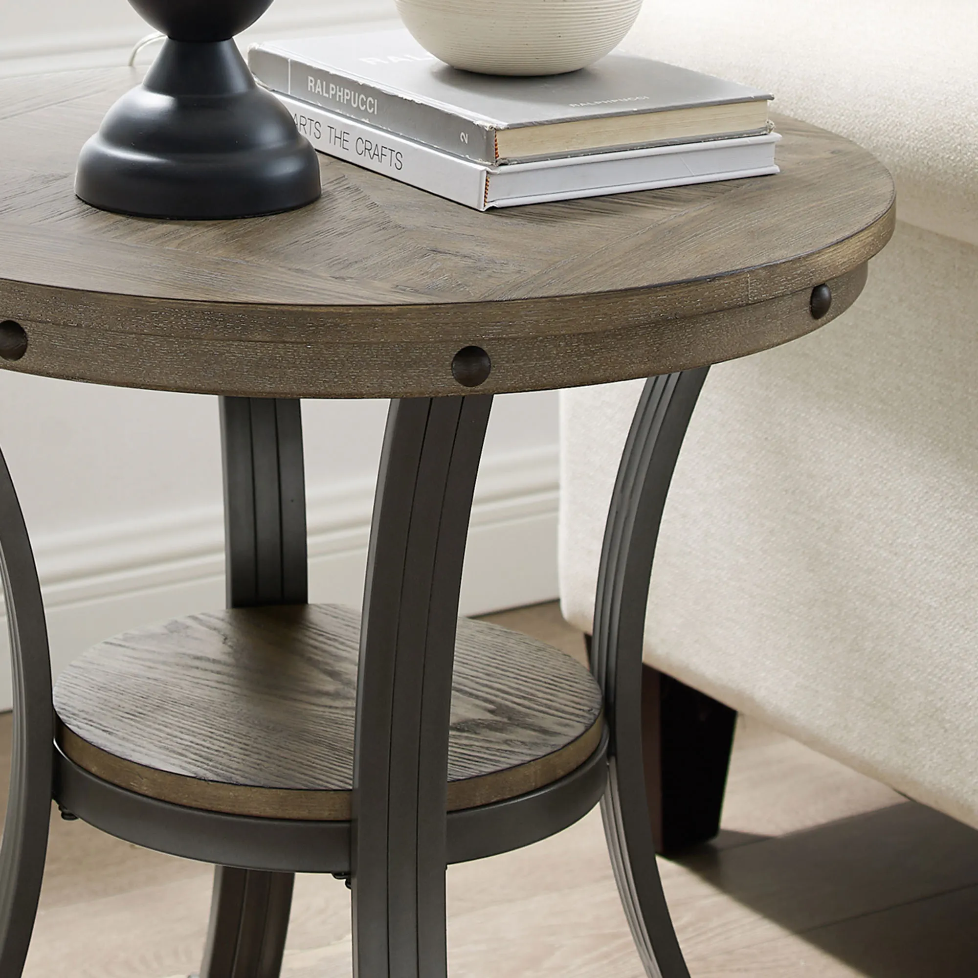 Ferdinand Gray Wooden and Metal Industrial Style Round Accent Table