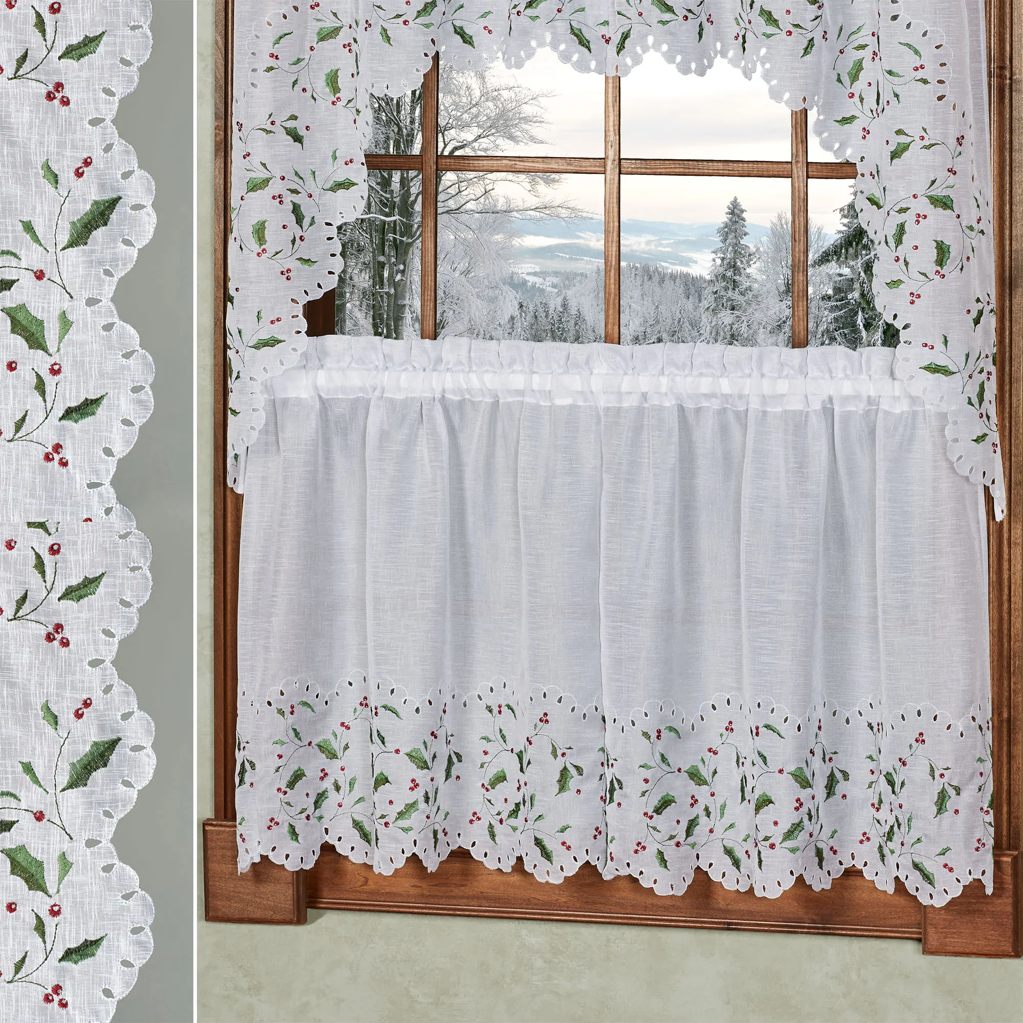 Festive Holly Semi Sheer Holiday Tier Window Treatment