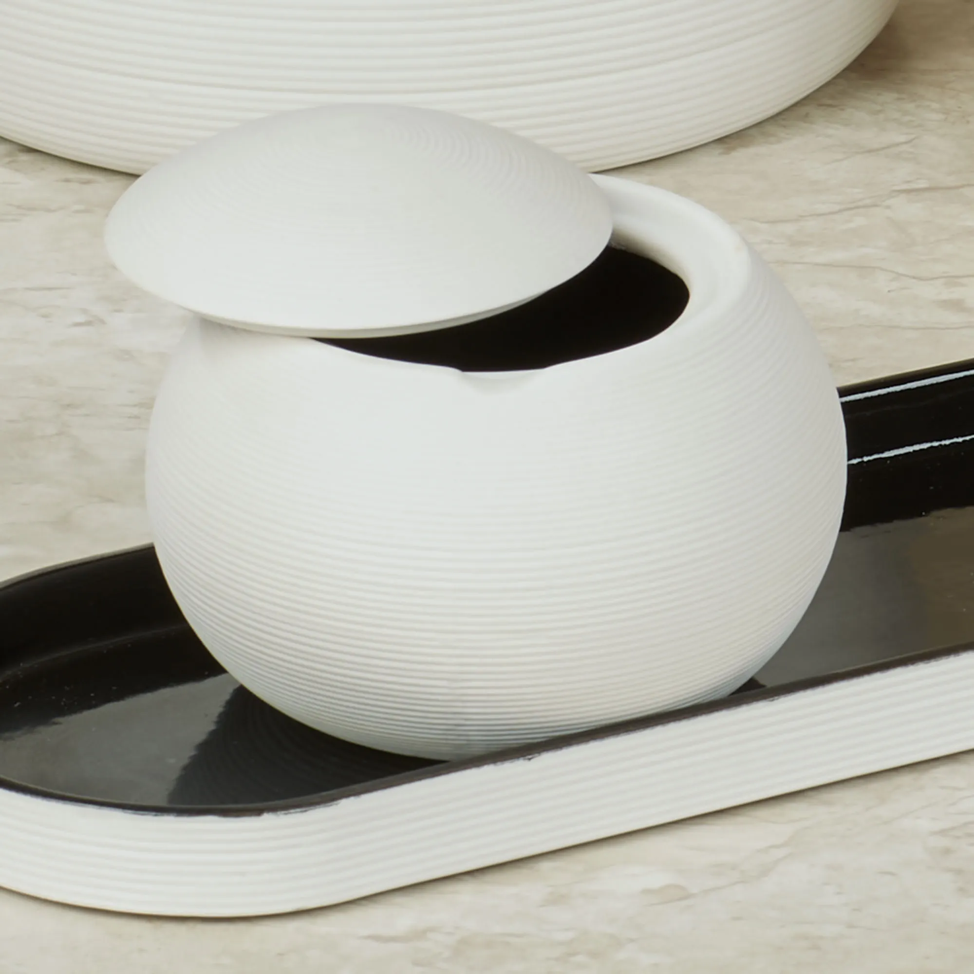 • Ivory finish with a ribbed texture