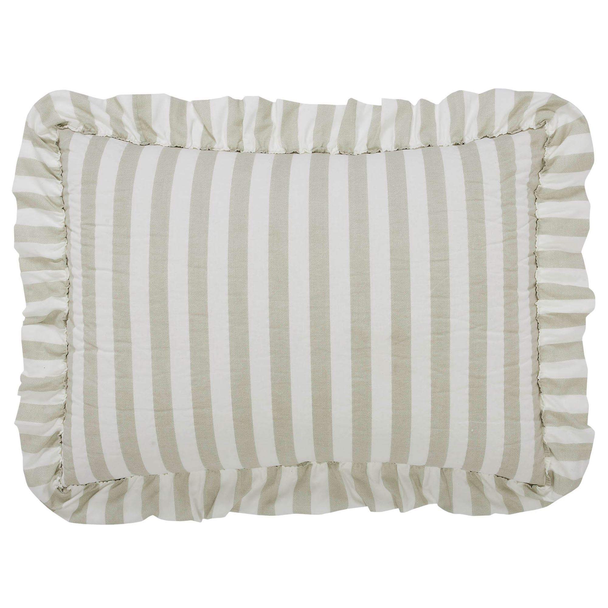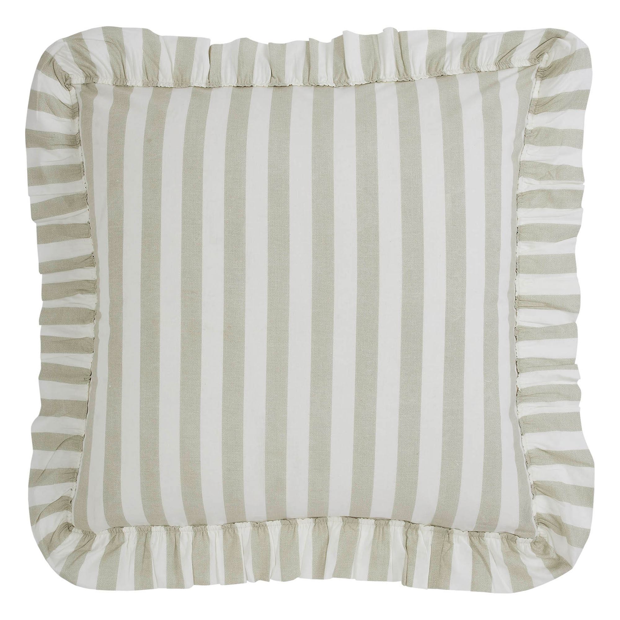 European Sham has printed stripes, a ruffled flange, and a French back closure.