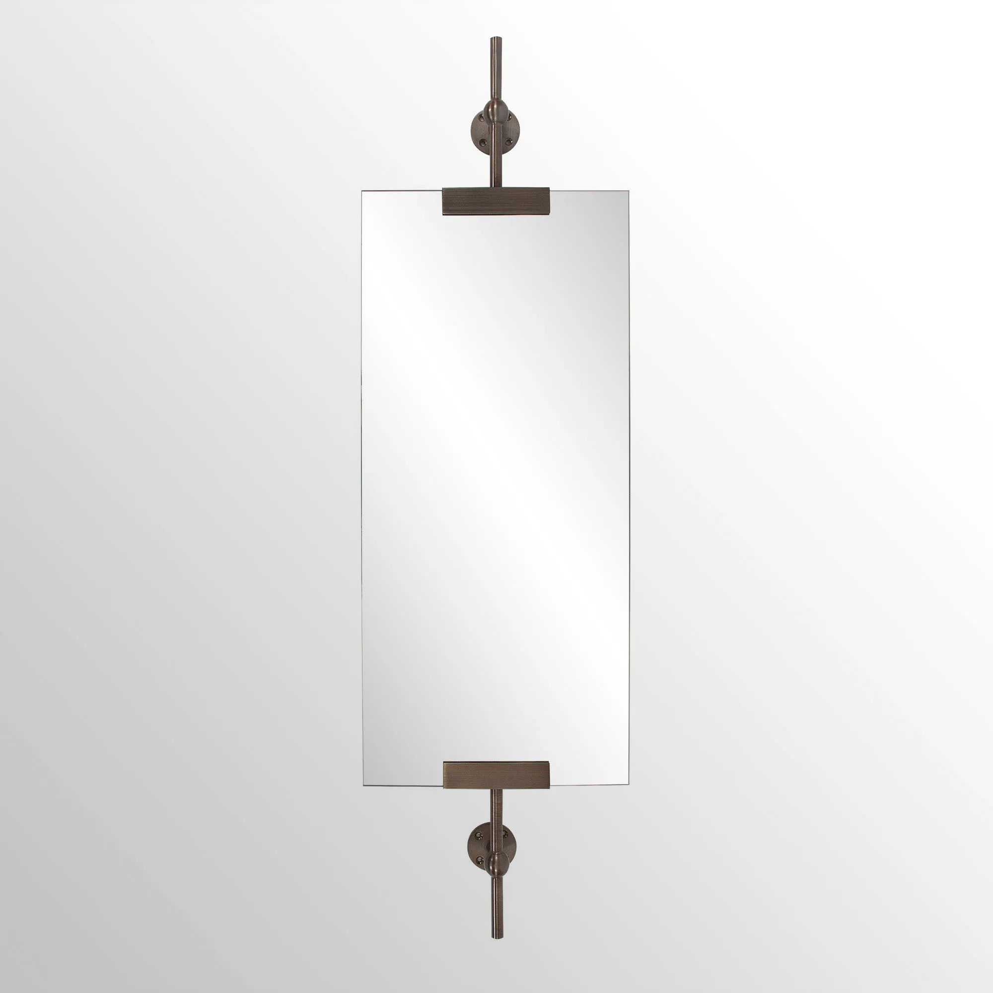 Reminiscent of vintage mirrors, the Finely Rectangle Wall Mirror has a minimalist design. Perfect in any setting, this mirror has hand-forged metal brackets with an oil-rubbed bronze finish, a glass center, and an elongated rectangular shape. Mirror may hang vertically or horizontally. As shown, measures 10"Wx2.5"Dx34"H.