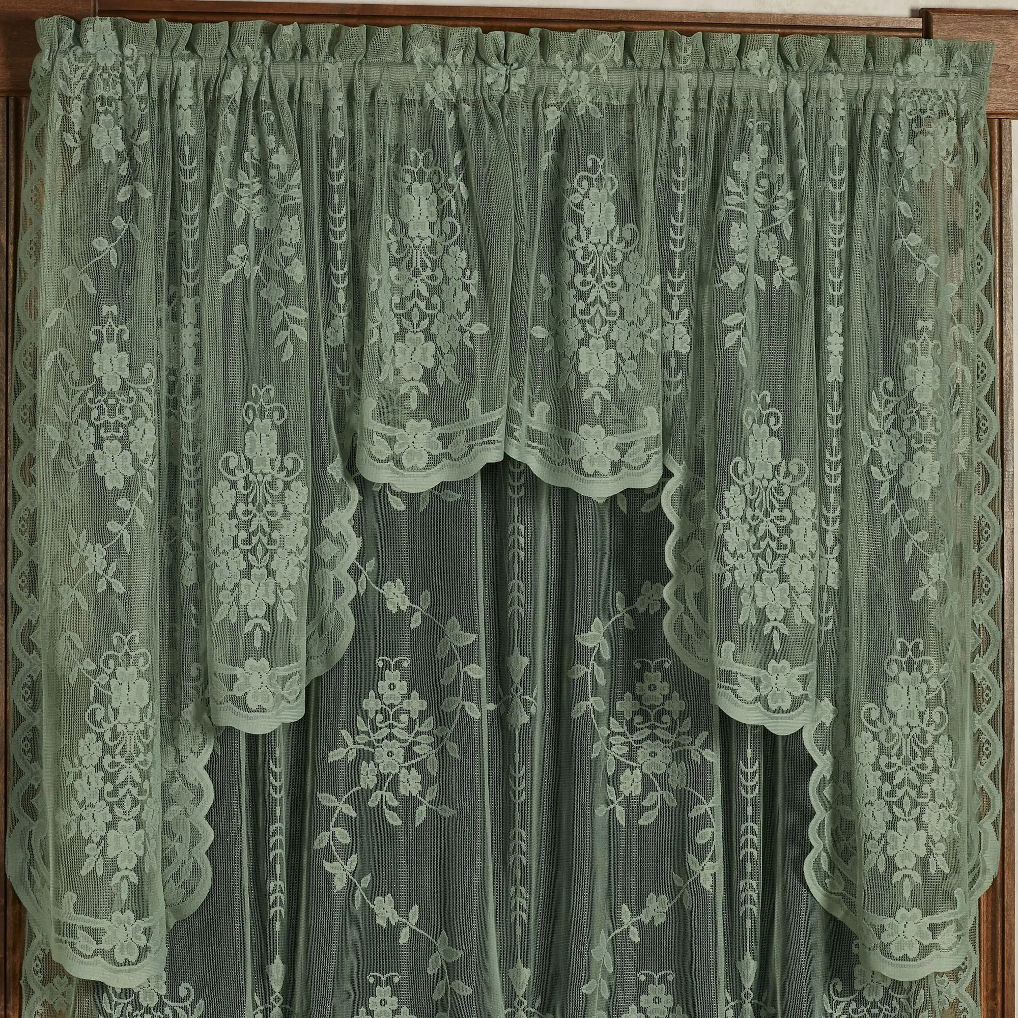 Shown in main image: 1-38"L Swag Valance Pair & 1 Insert Valance over 2-84"L Curtain Panels & 1-63"L Curtain Panel (styled as a shade)