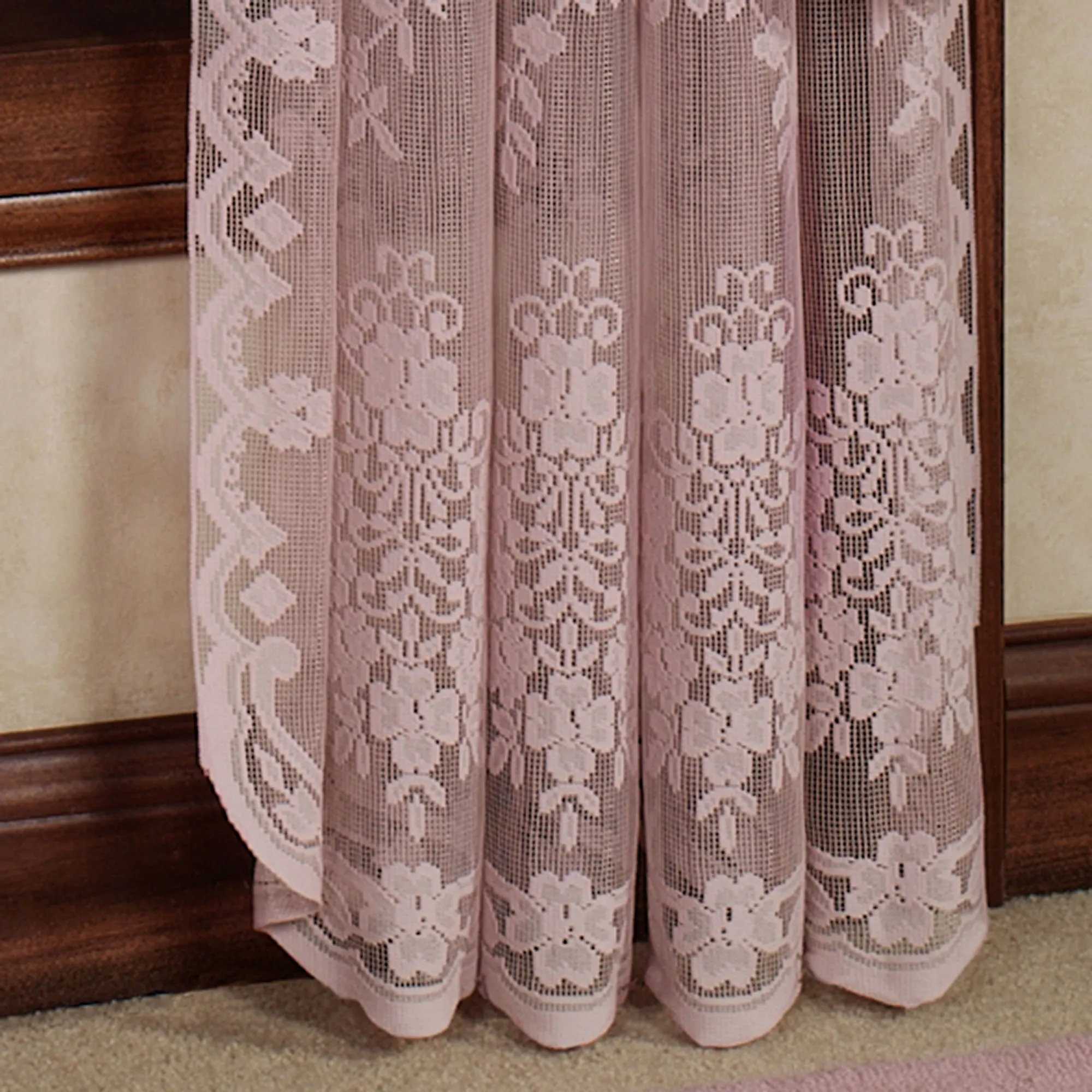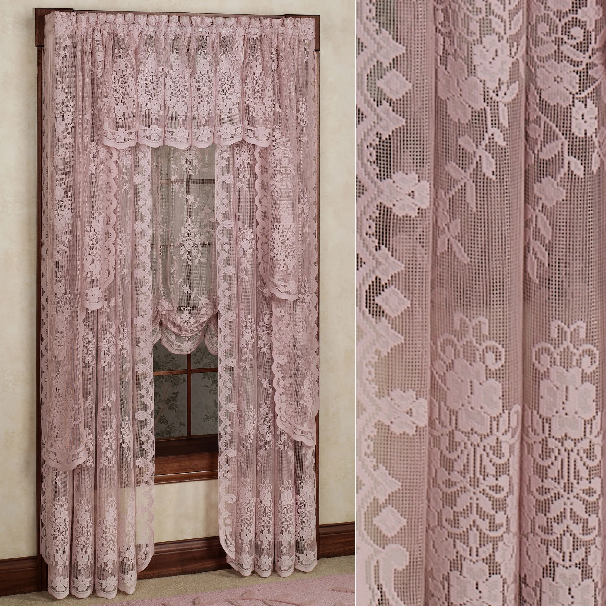 The Fiona Lace Window Treatment is made from polyester. Imported.