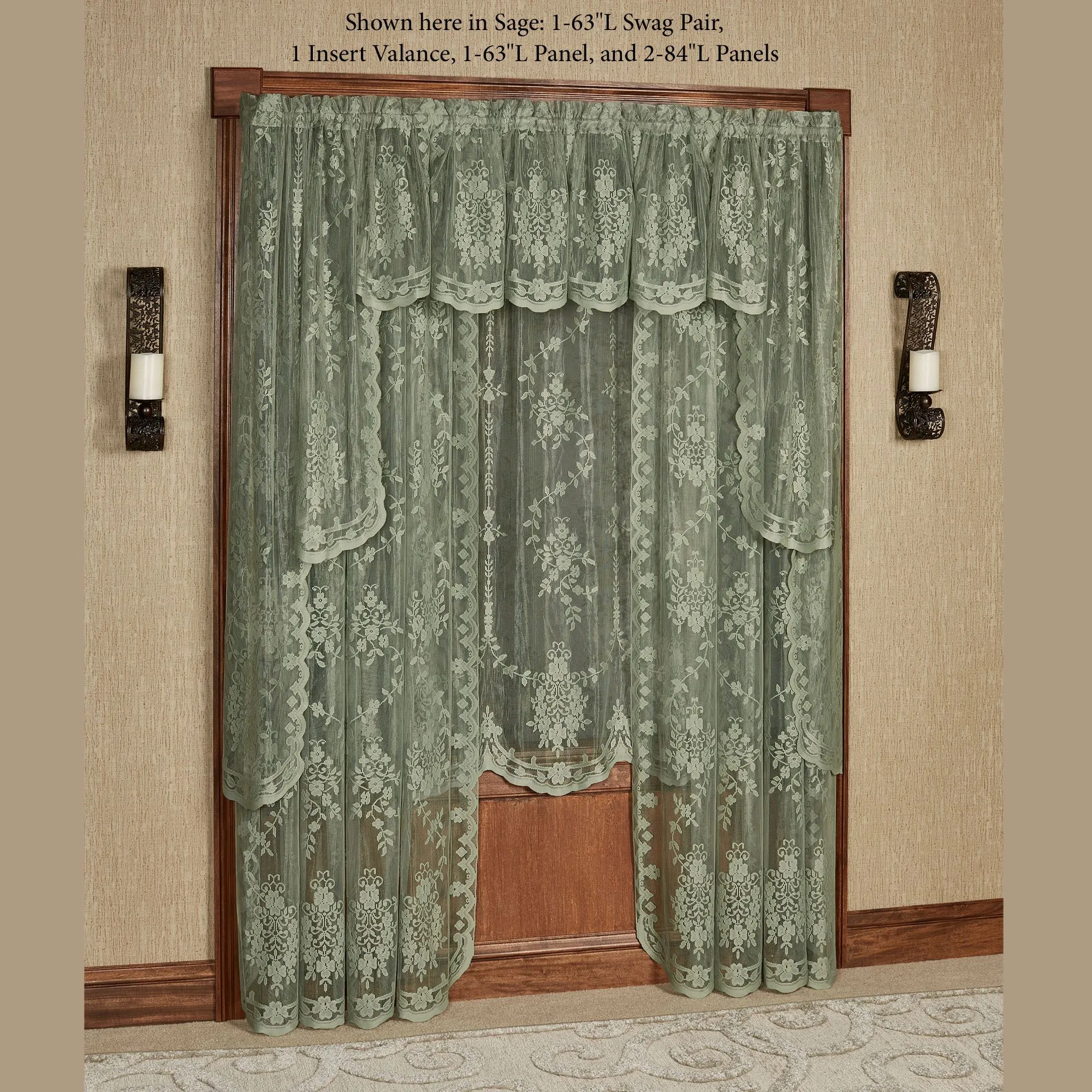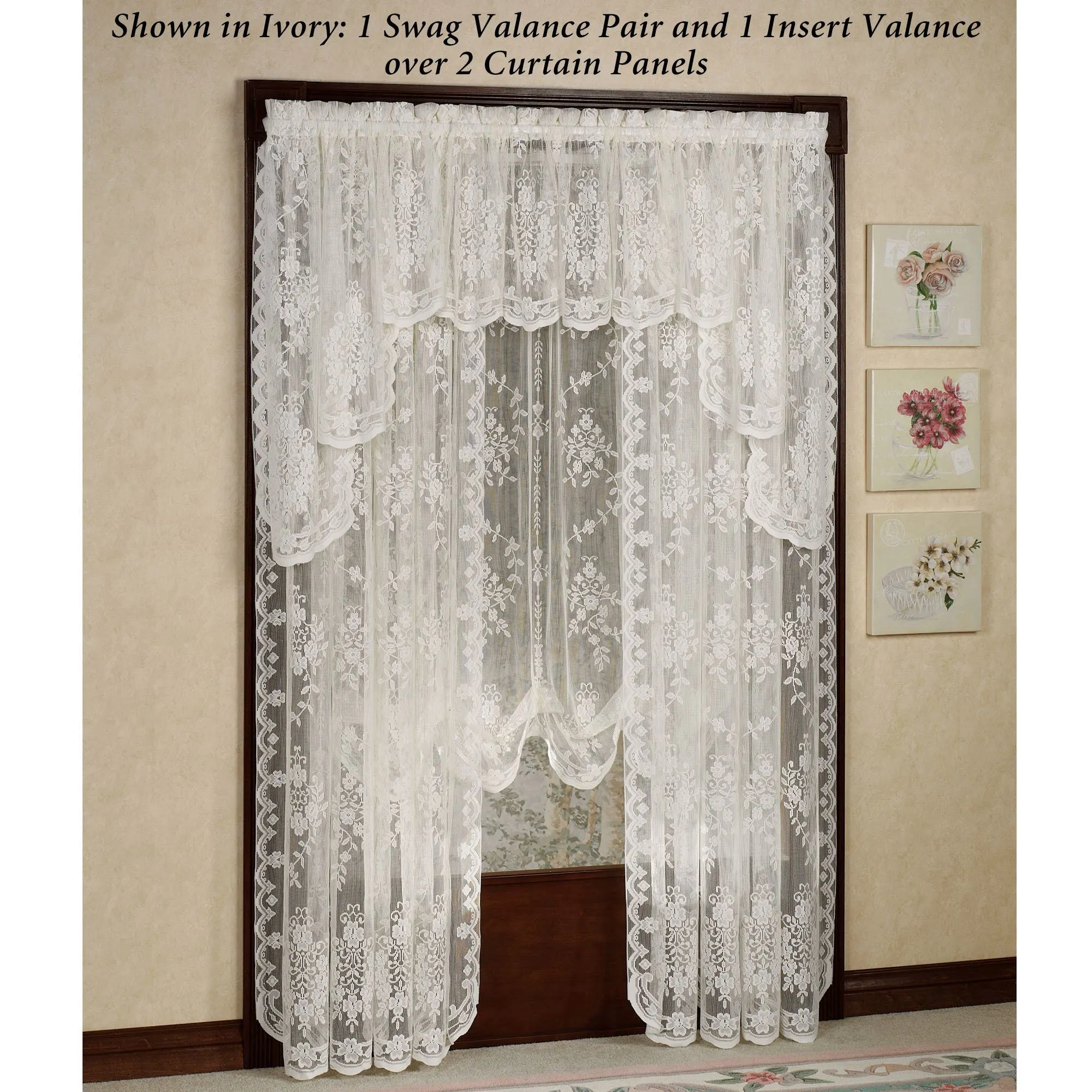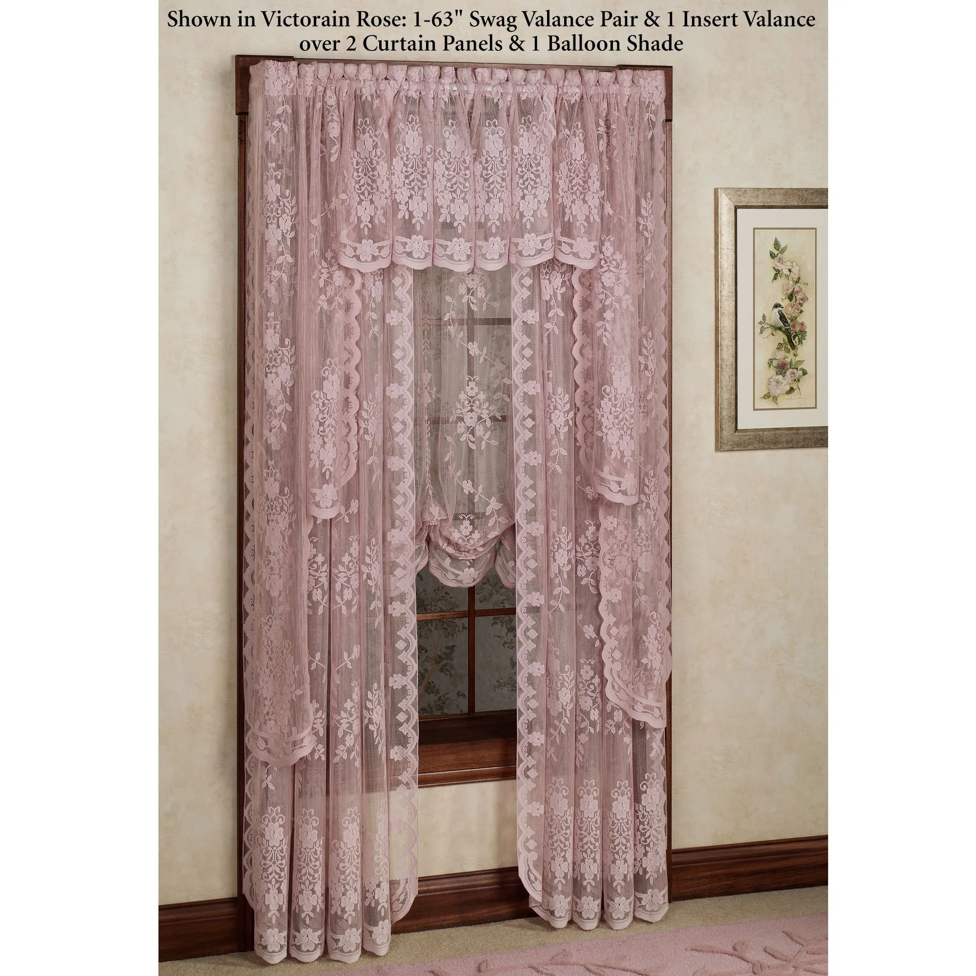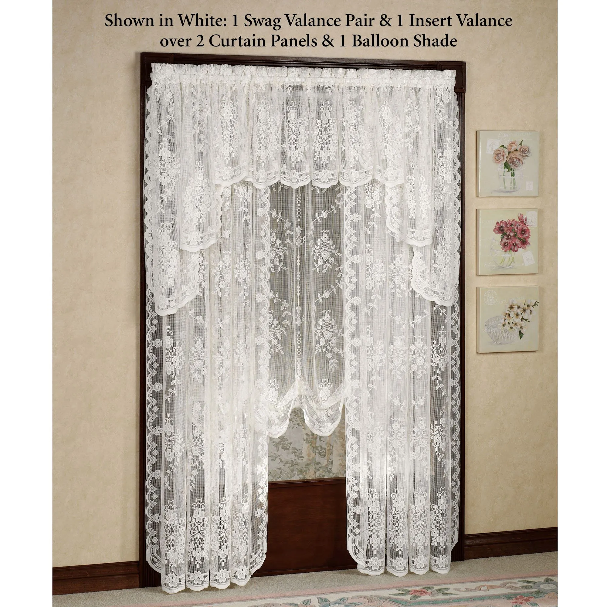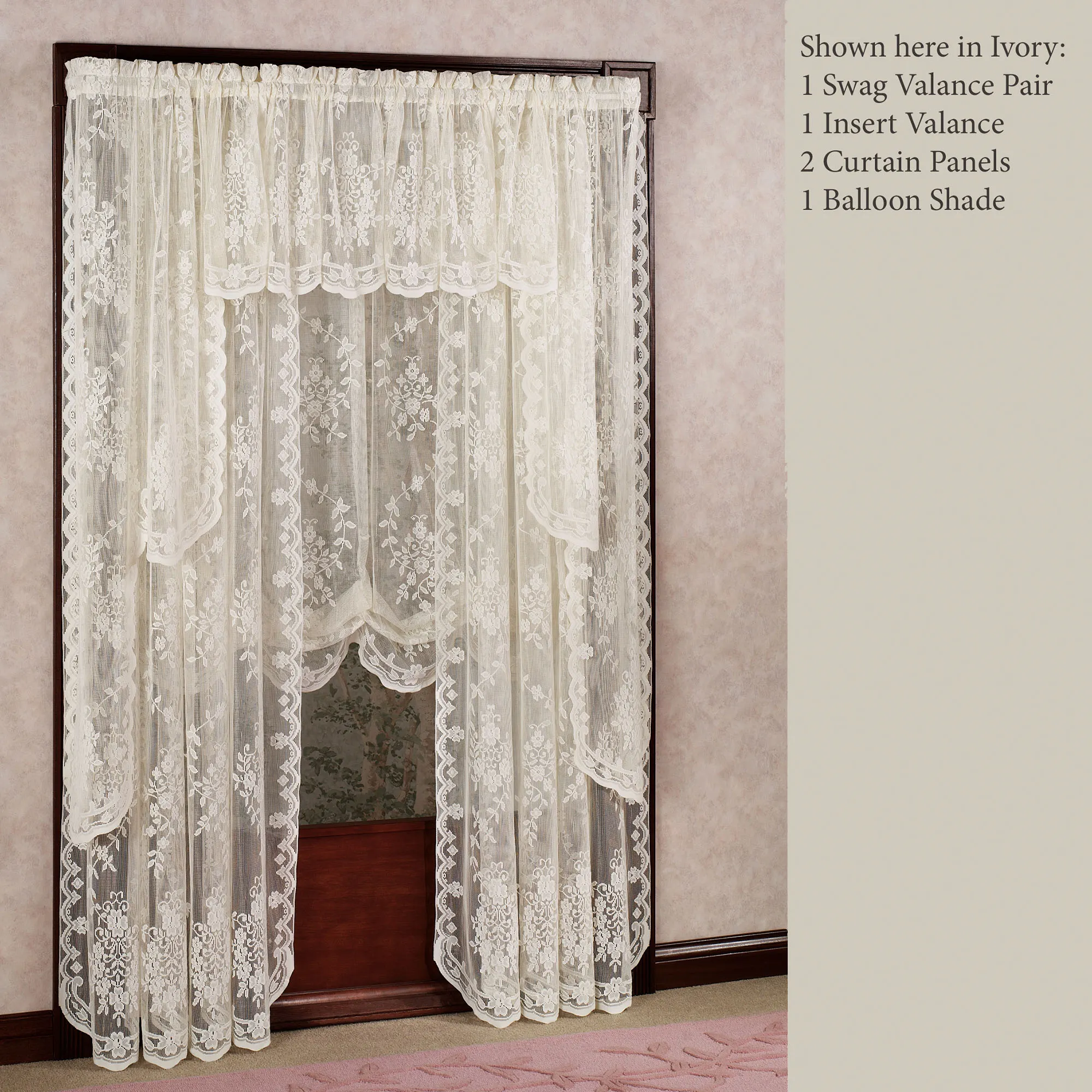 Shown in the main image: 1 Swag Valance Pair & 1 Insert Valance over 2 Curtain Panels & 1 Balloon Shade