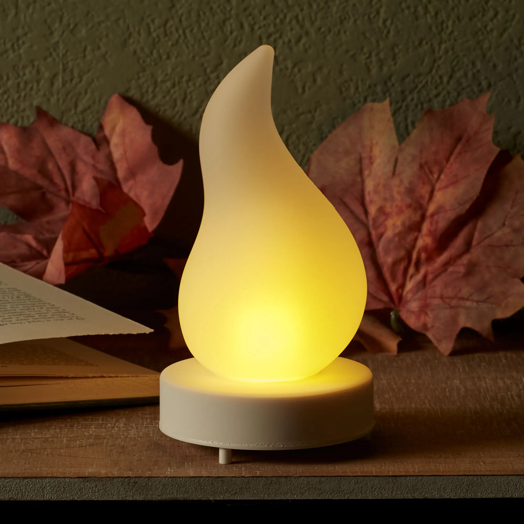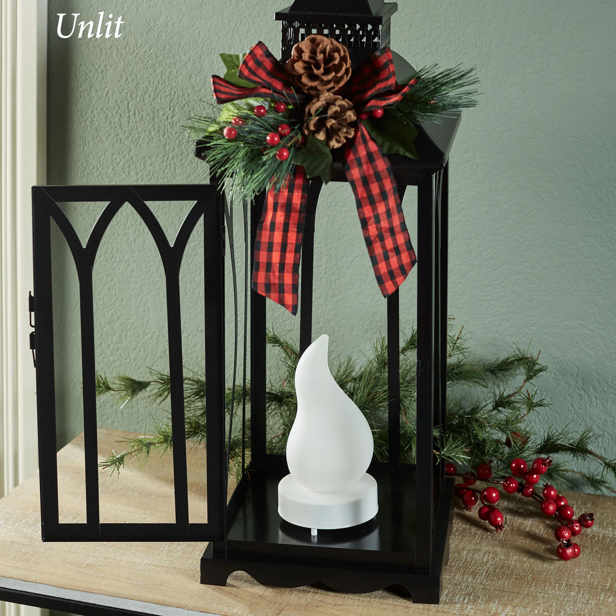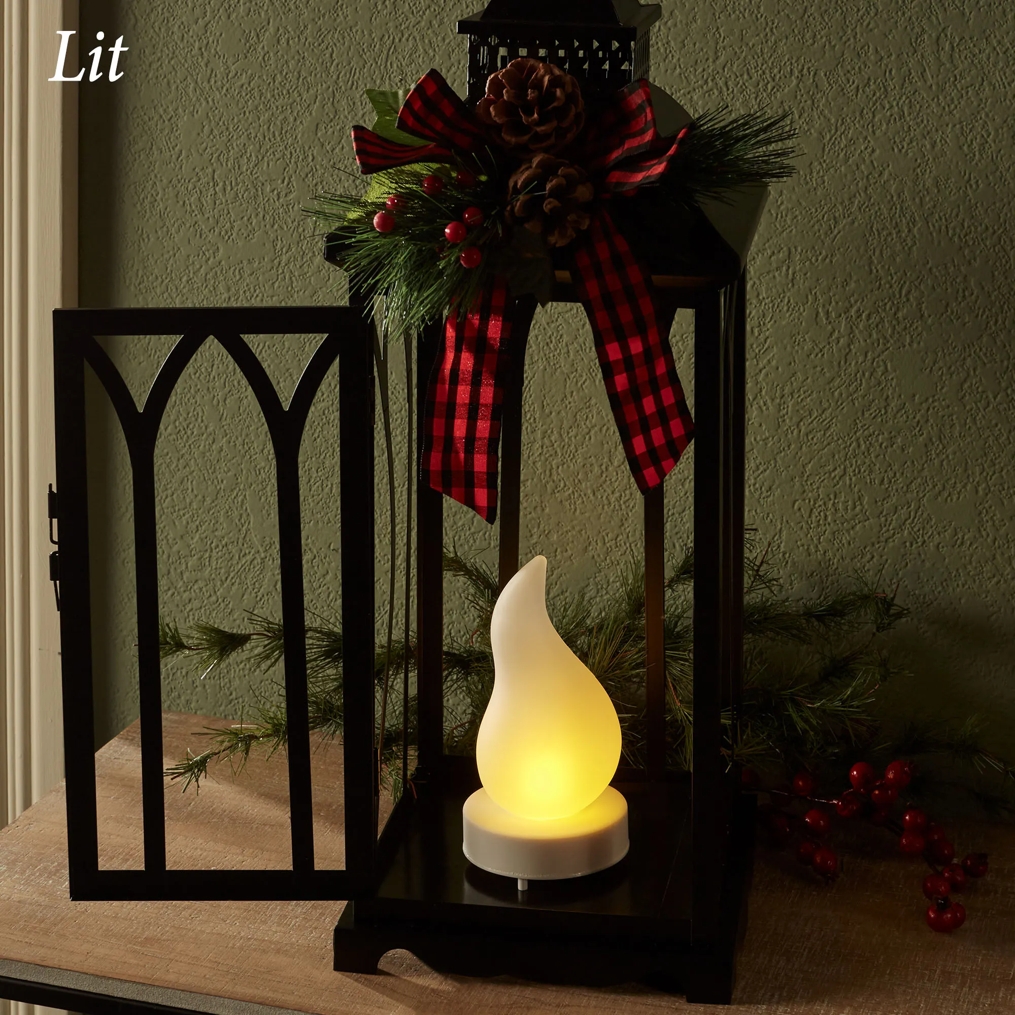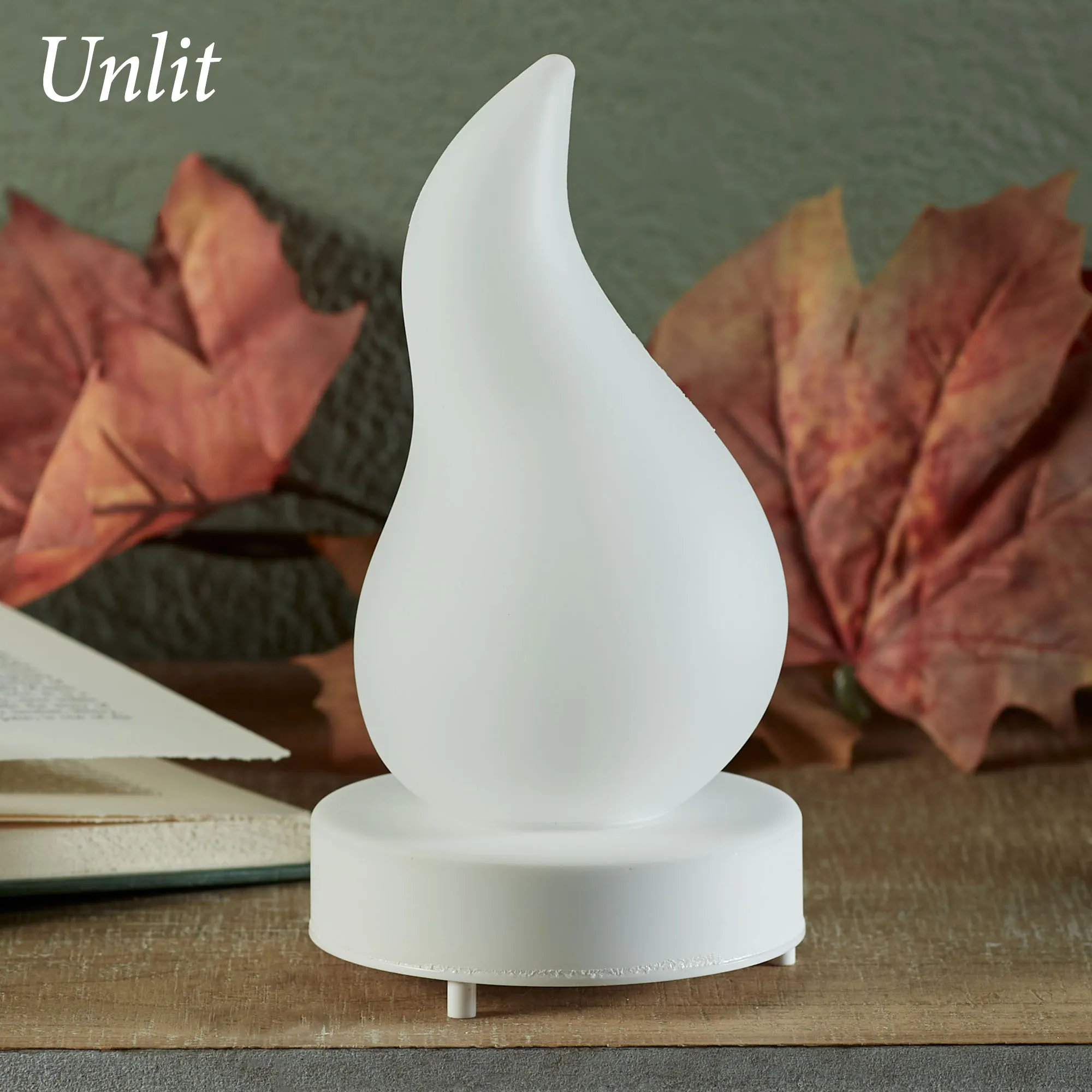 Accentuate your lantern or candleholder with the unique Fireglow(R) Flame Bulb Candle. Made of molded polymer, this frosted white LED bulb is in the shape of a flame and flickers when lit. This white bulb candle can also be used as a stand-alone piece and requires three AA batteries, not included. The on/off/six-hour timer switch is located on the bottom. For indoor use only. Measures 3.5"Wx3.5"Dx6.5"H.