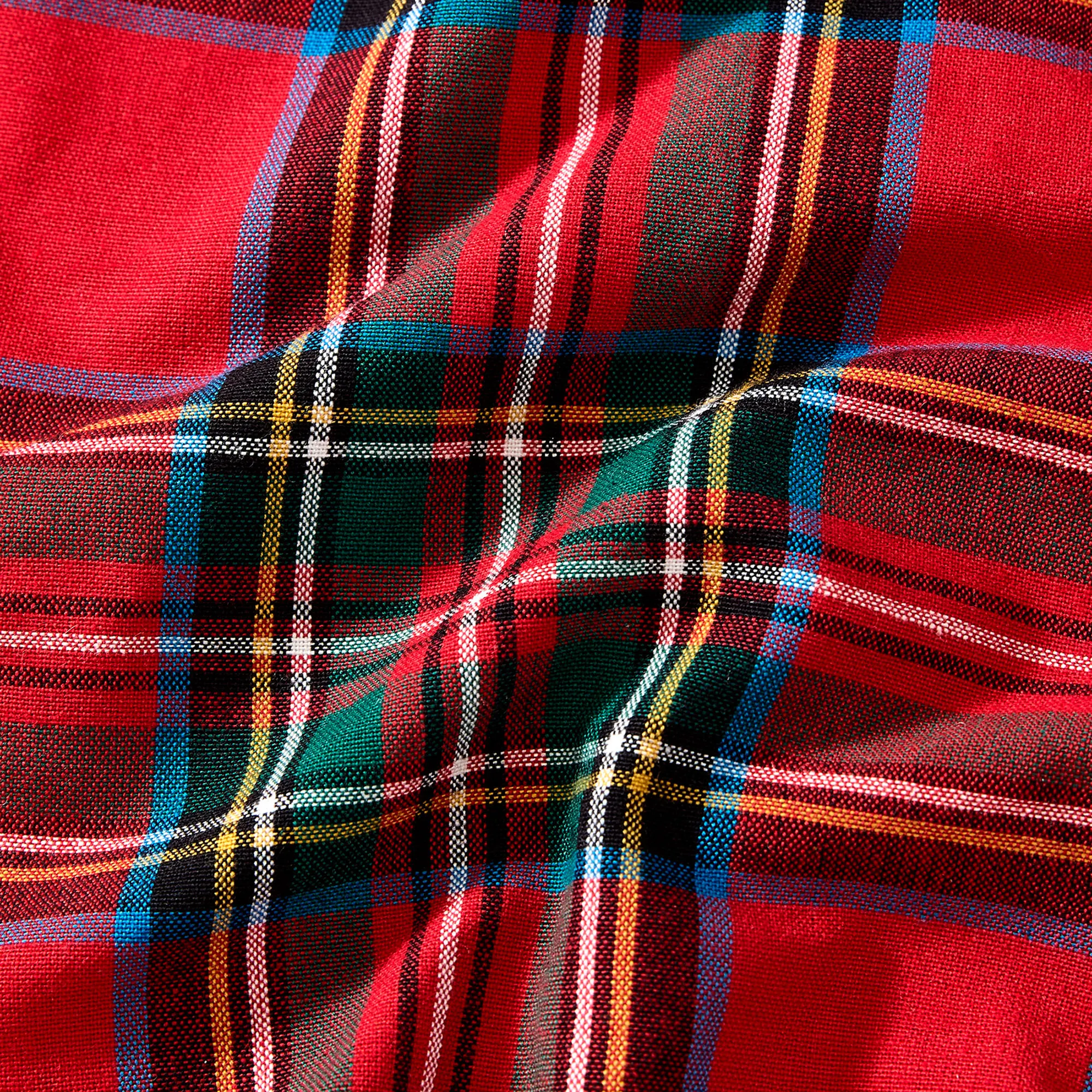 The Fireside Tartan Plaid Christmas Tree Skirt is cotton/polyester. Imported.