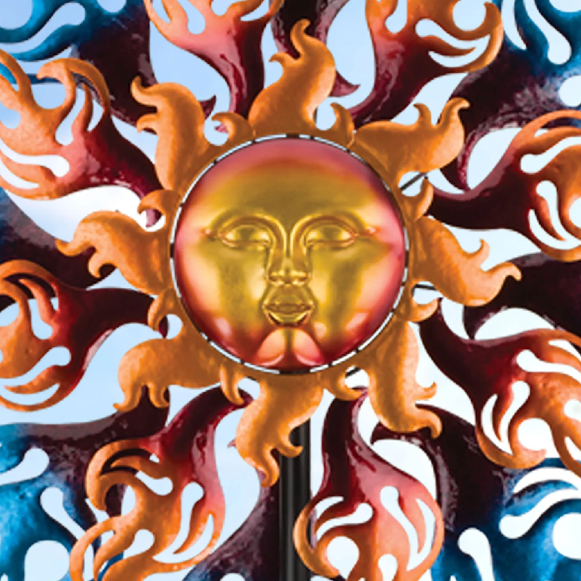 Flaming Sun Outdoor Garden Wind Spinner Stake
