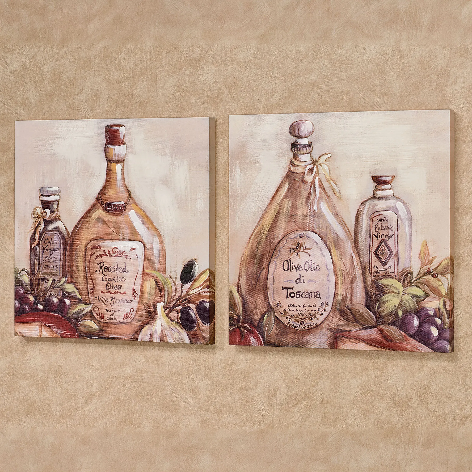 The Flavors from Italy Wall Artworks are canvases wrapped around wood frames.