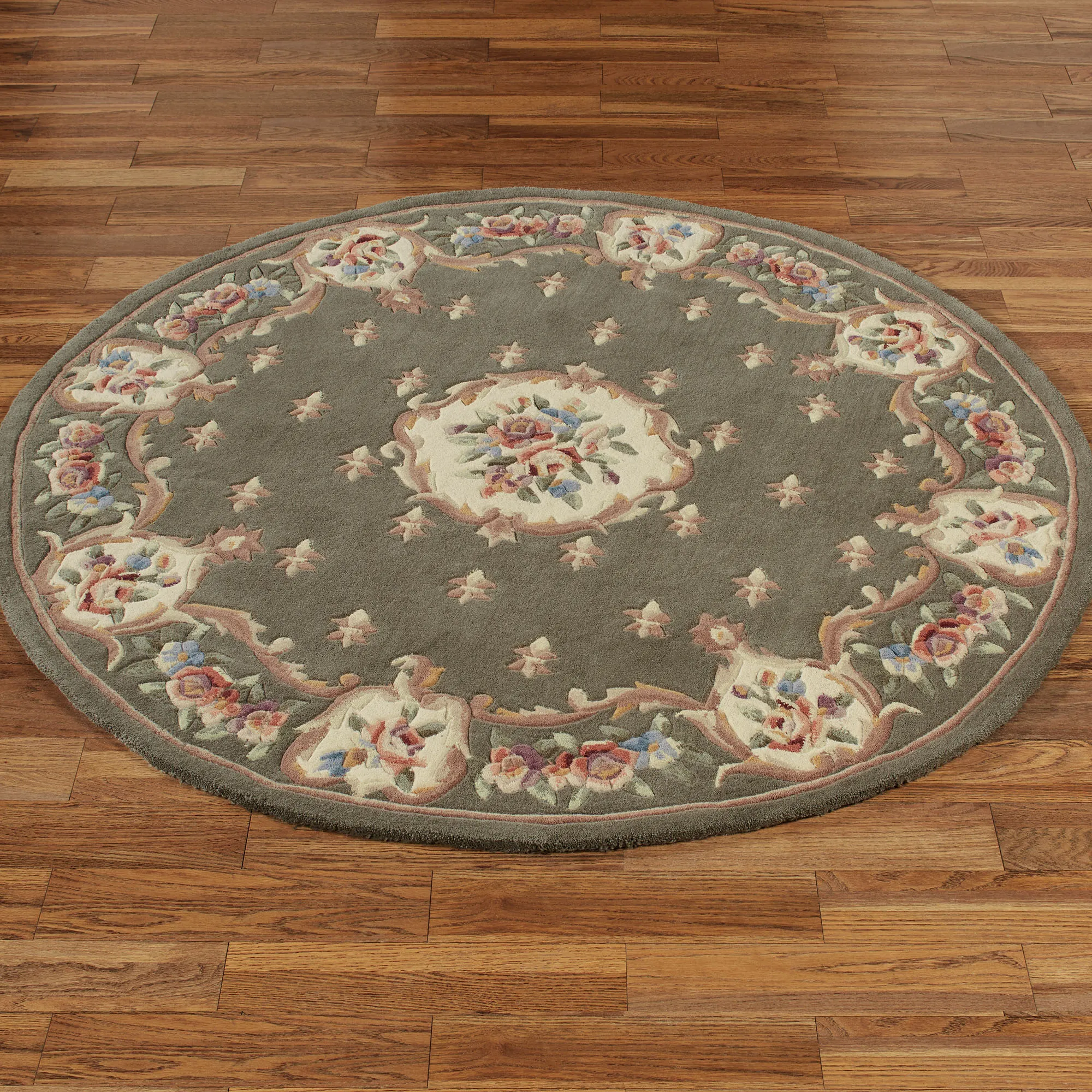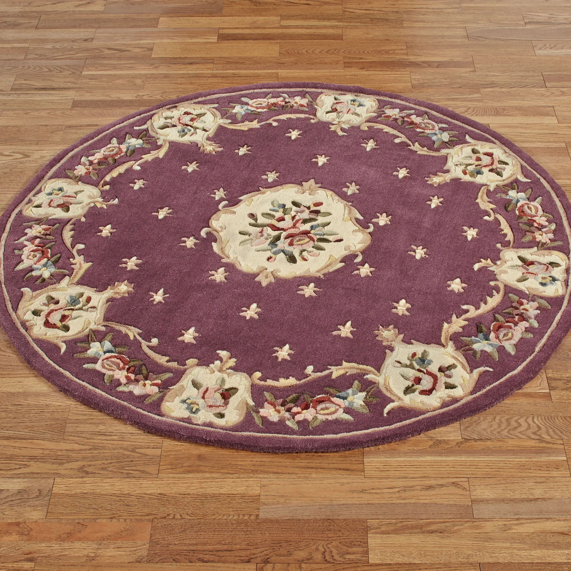 The Fleur-de-Lis Aubusson Round Rugs are wool with cloth-covered latex backs. Imported.