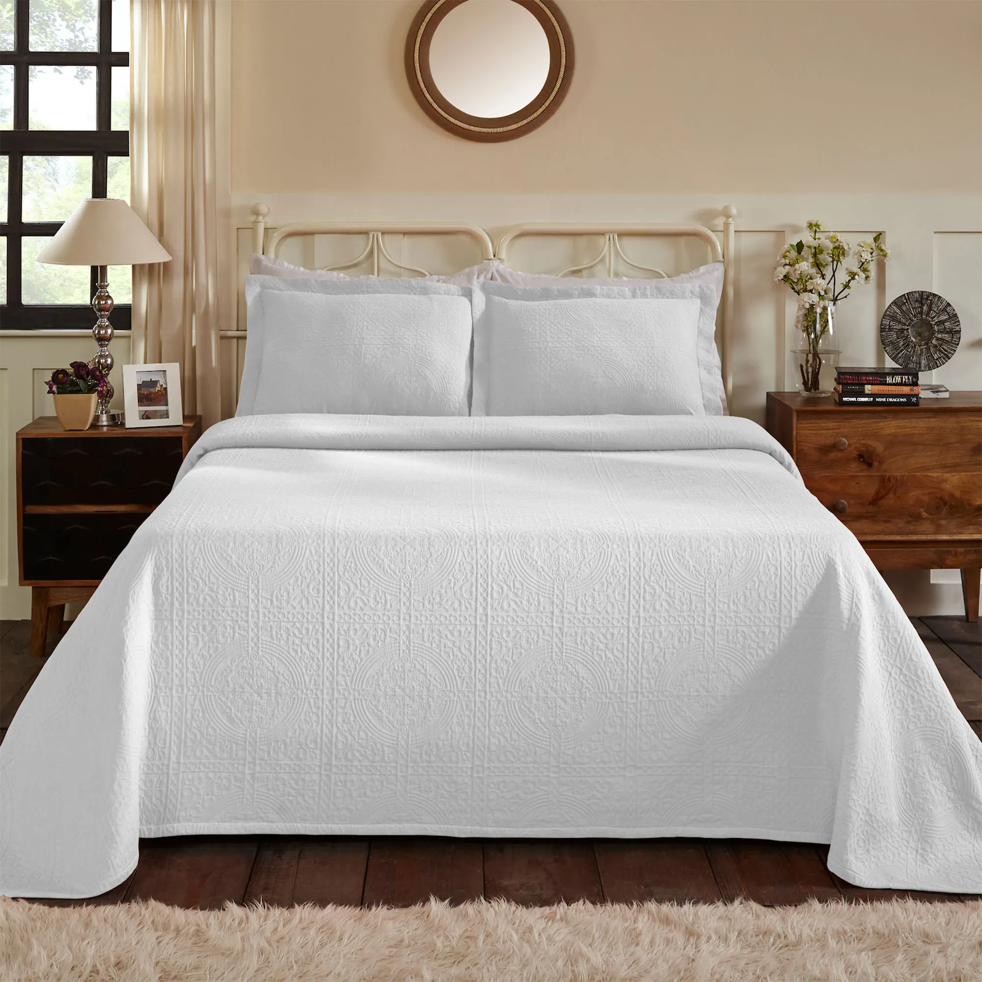 Fleur de Lis Lightweight Jacquard Woven Matelasse Bedspread Set