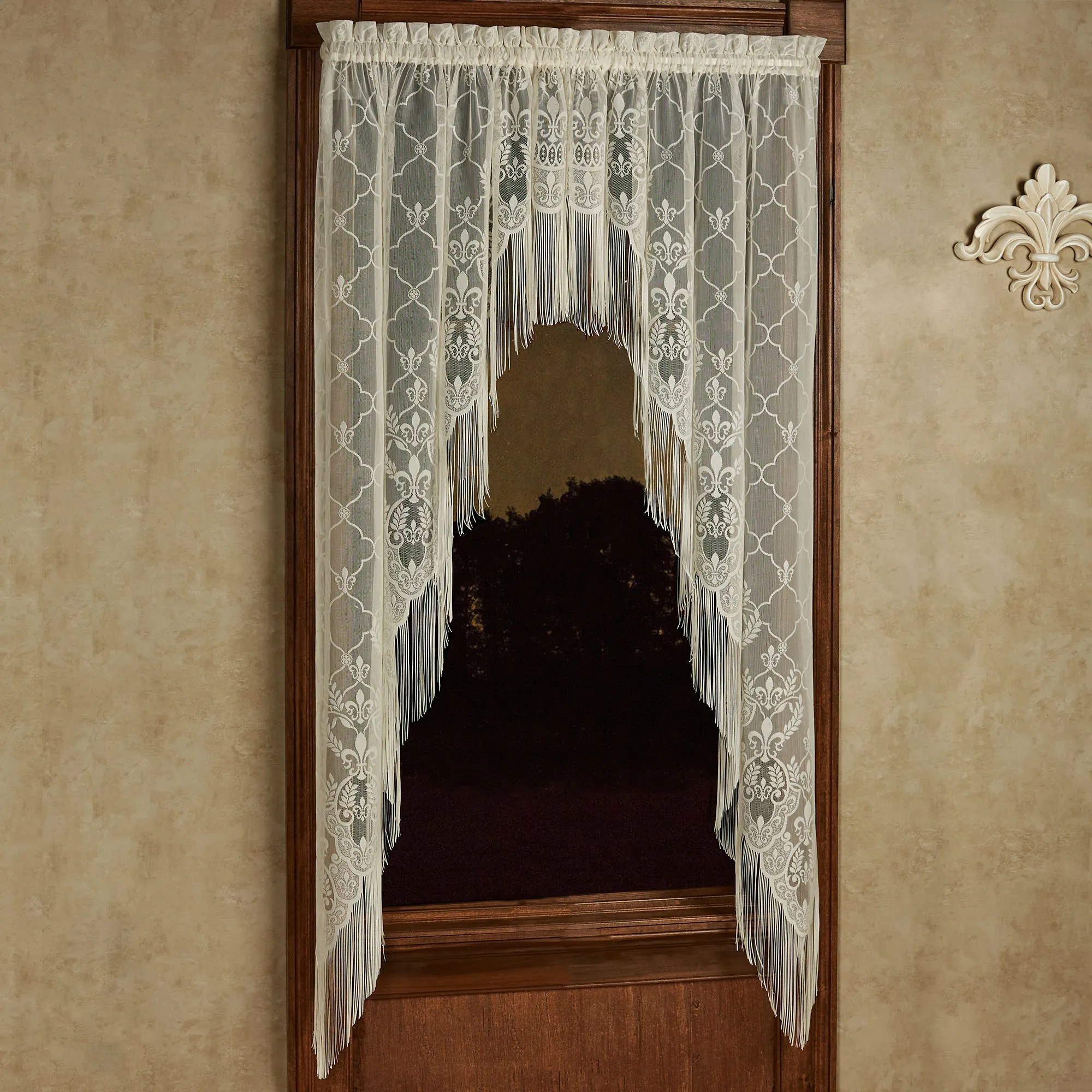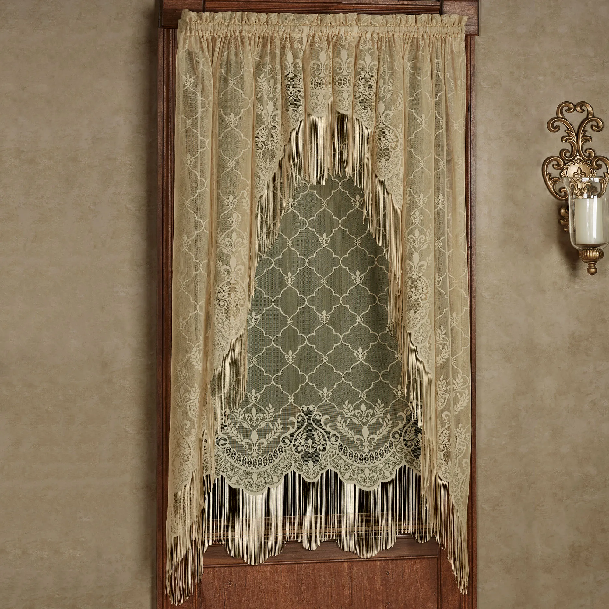Love, love, love these valances for a finished elegant look to a window!! Love the color, gold, and the fringe!! Lace combined with that and it’s a beautiful combo!! I bought it with a scalloped insert valance for a wider window!! Couldn’t be happier!!
