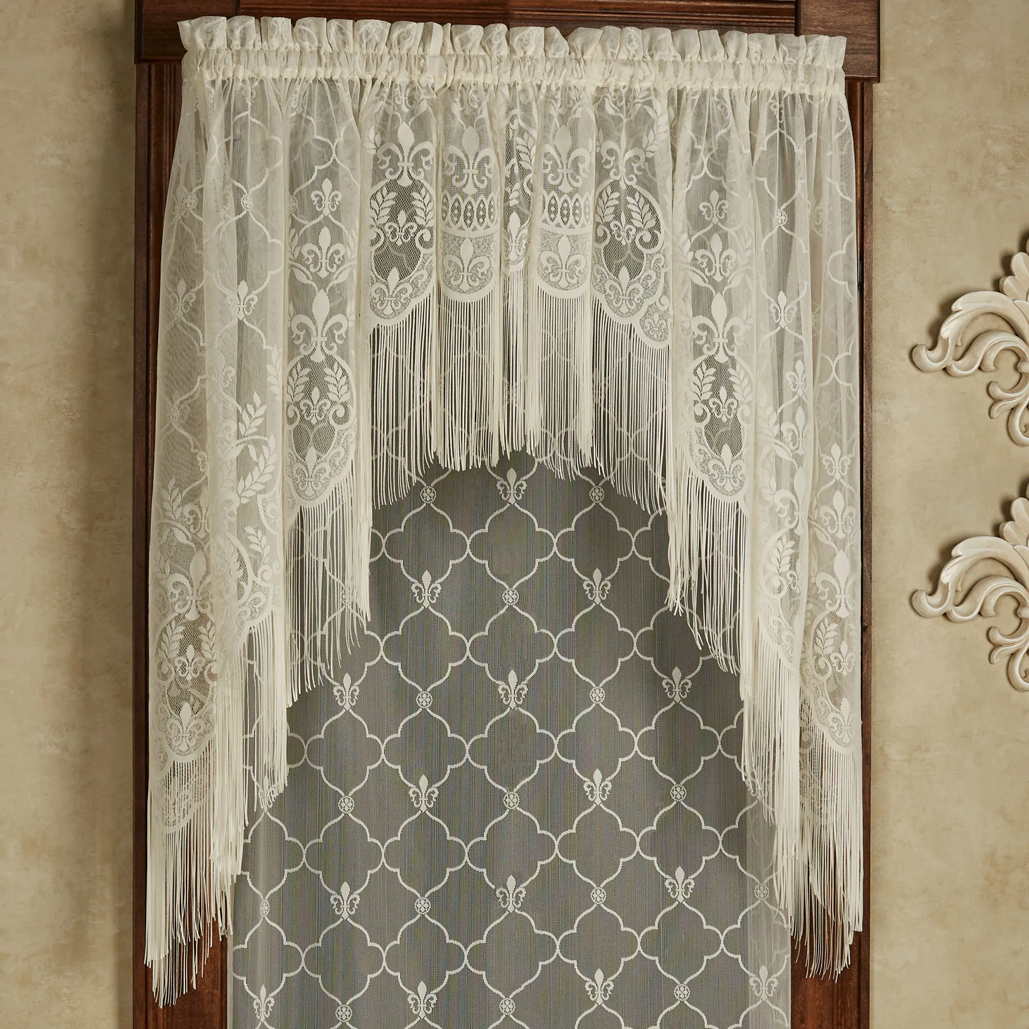 ViewContent_202603311045345364883 Fleur de Lis Lace Swag Valance Pair 75 x 38