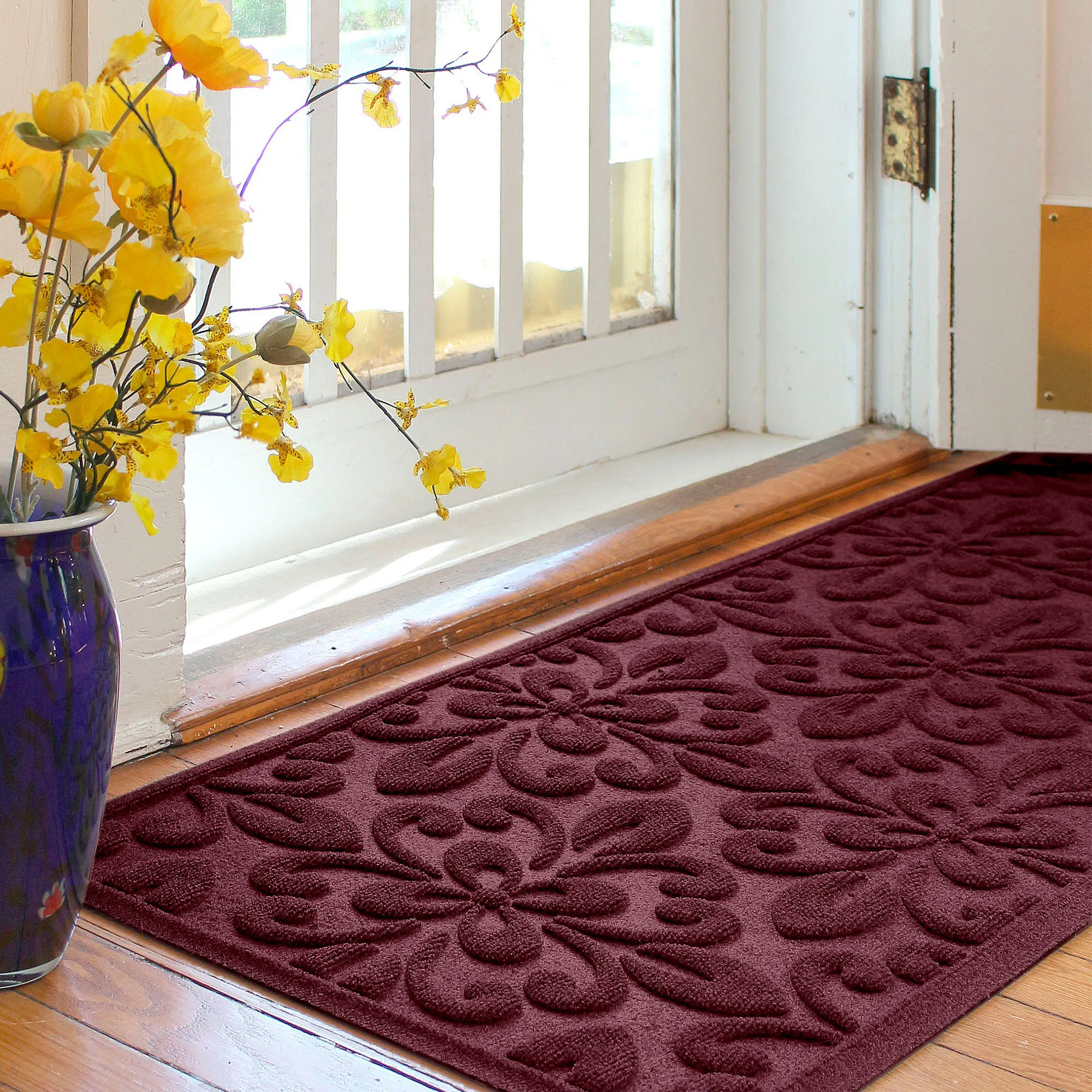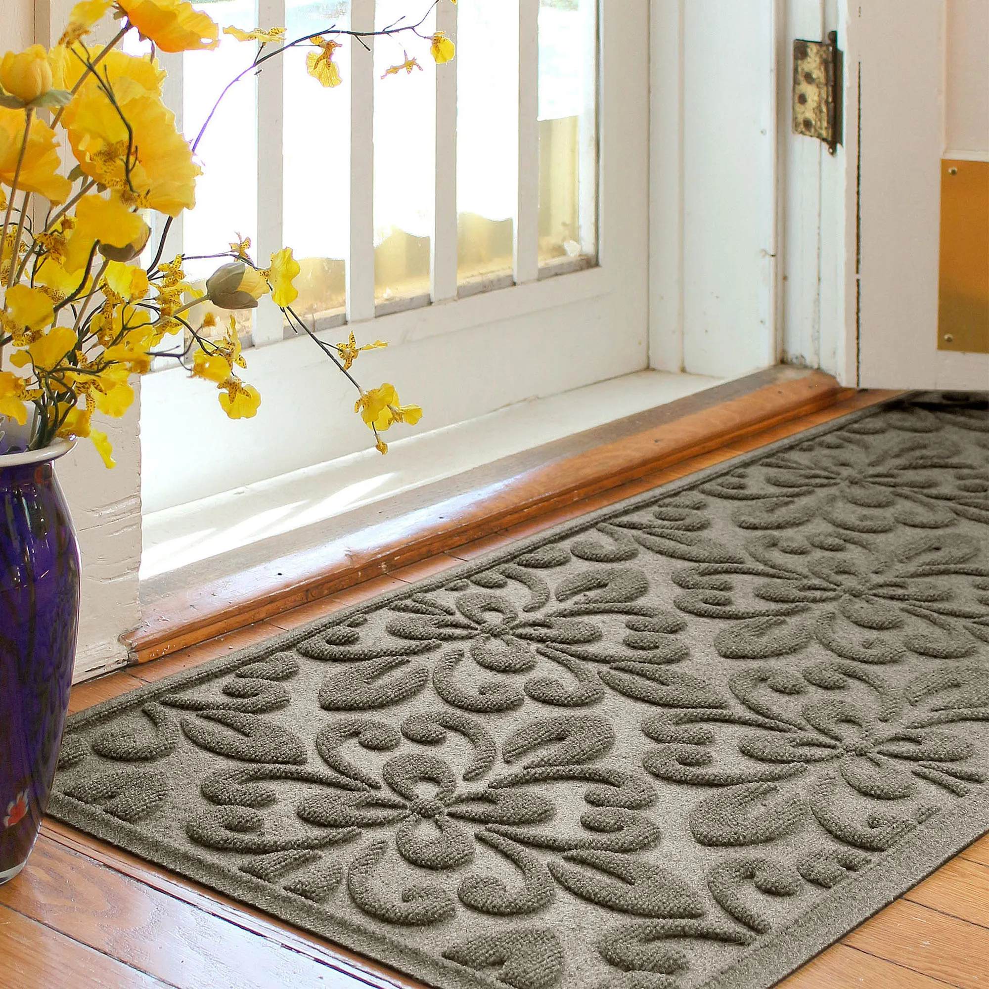 • WaterHog(R) mat features a fleur medallion design