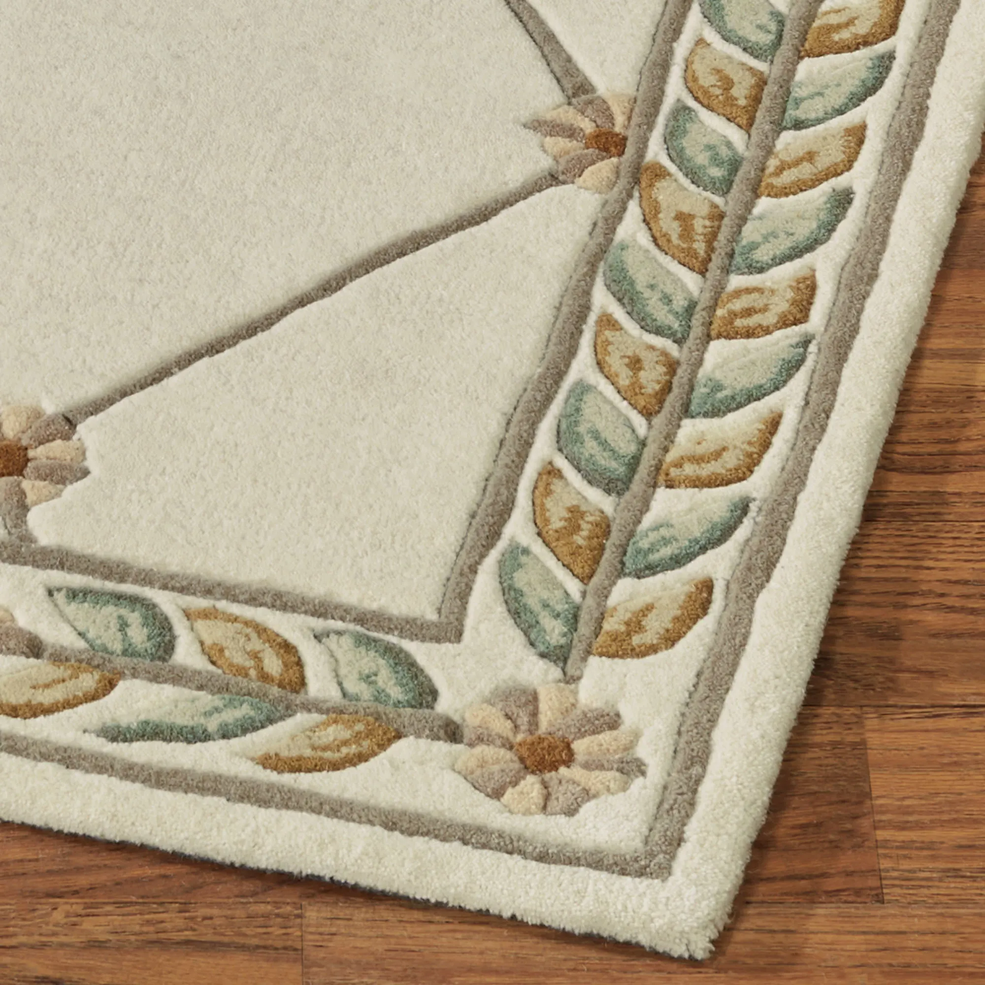 Classically define your living space with the sophisticated splendor of the Fleurette Rug Runner. This hand-tufted wool rug, .75" thick, has handcarved trellis, floral, and leaf motifs on a solid color background. Accent colors include shades of winter white, nomad, and curry. Backing is cloth-covered latex. We recommend professional cleaning by a rug cleaner. Made in India.