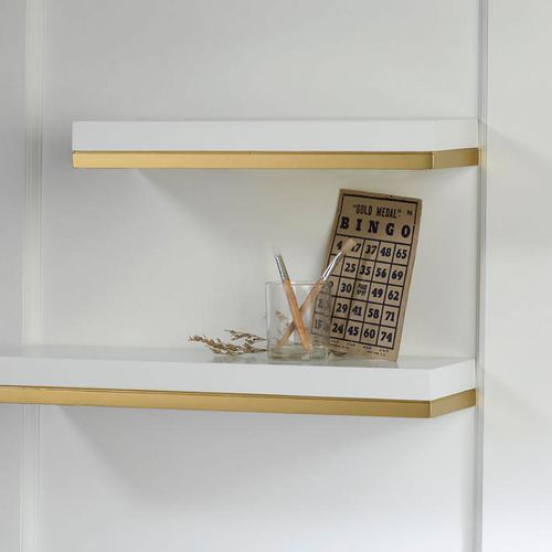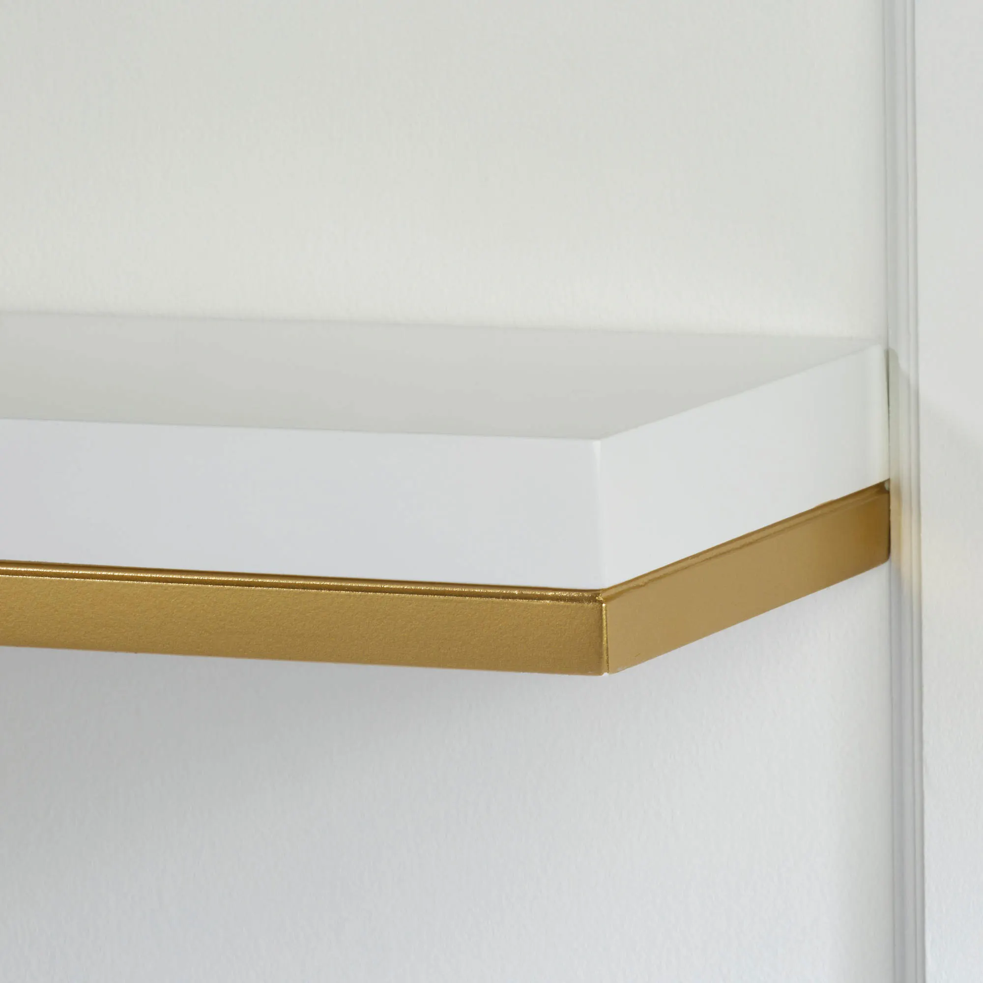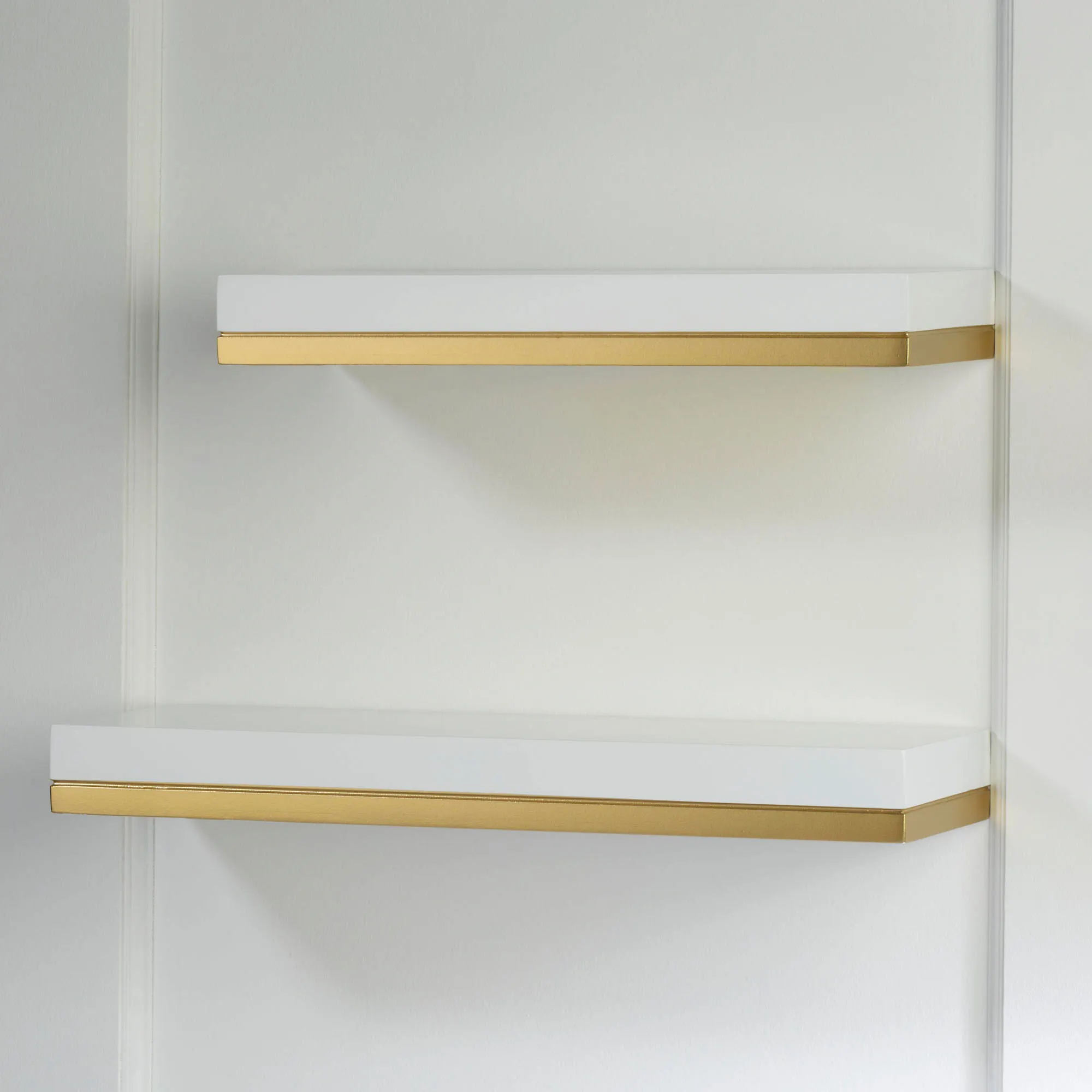 Floating Contemporary Wooden Wall Shelf Set in White and Gold
