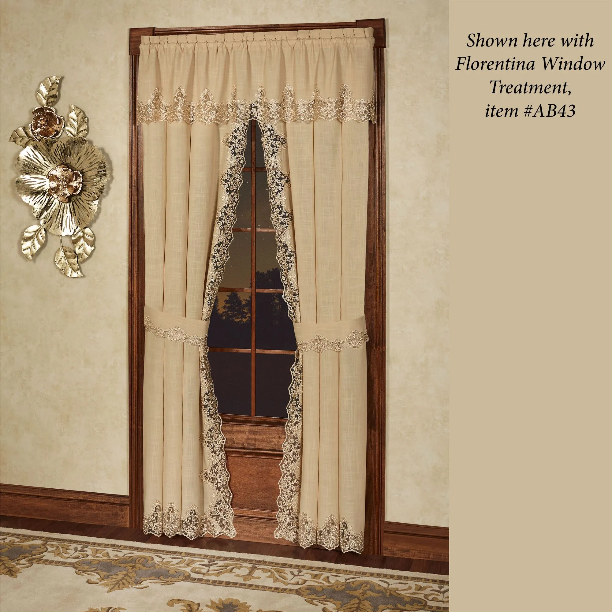 The Floral Glitz Wall Art shimmers with extravagance. Made of metal and beautifully finished by hand, this wall art features flower blossoms and leaves with realistic details in gold foil and copper. Floral wall art may hang horizontally or vertically. Measures 37"Wx3"Dx21"H.