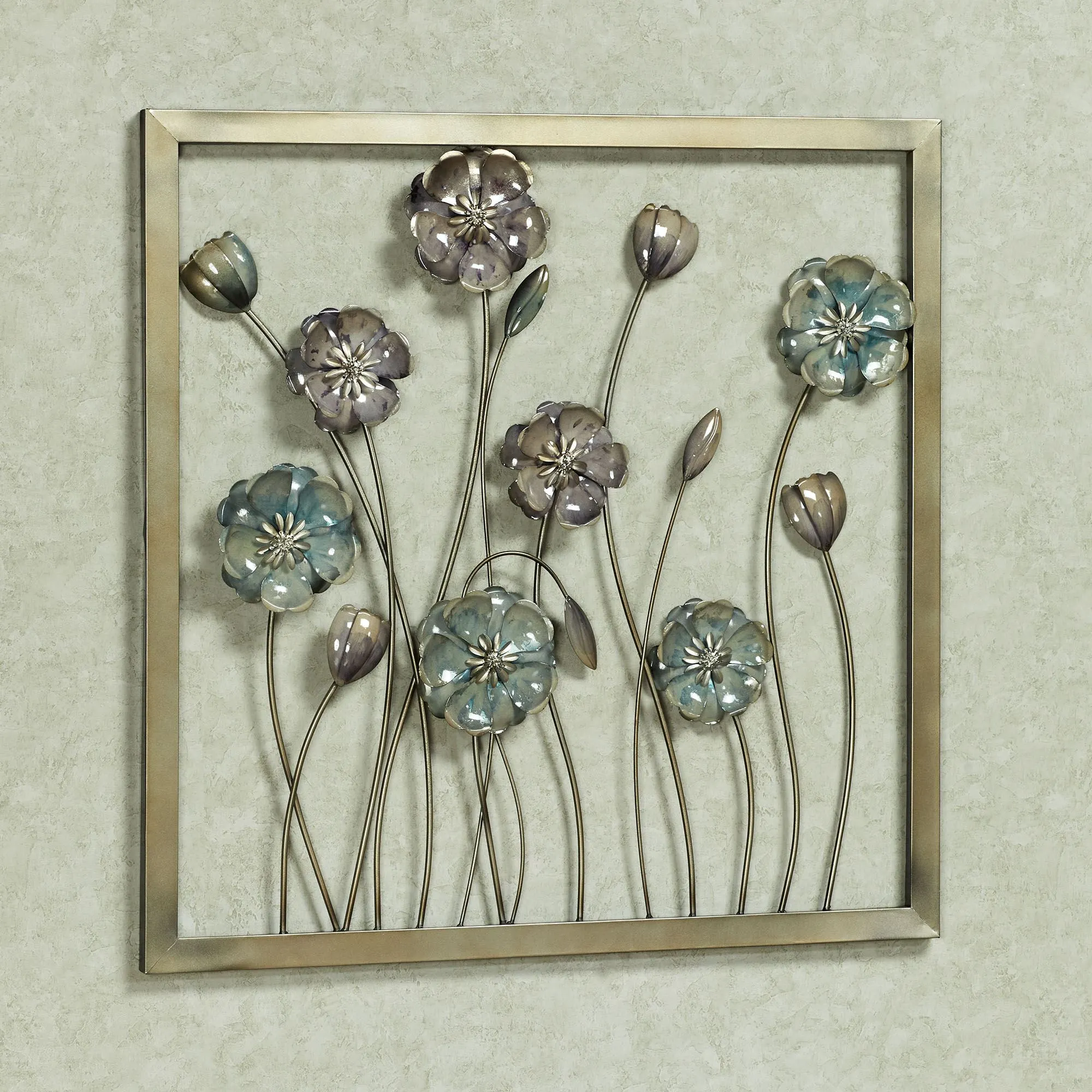 As the breeze rushes by, flower blooms bow in a Floral Salute. With a hand-dyed finish in hues of lavender and dusty aqua, this metal wall art features blooms and buds with platinum stems, arranged in an open design within a square, platinum frame. Due to the hand-finished nature of this item, subtle variations in color may occur. Floral wall art measures 32" sq.