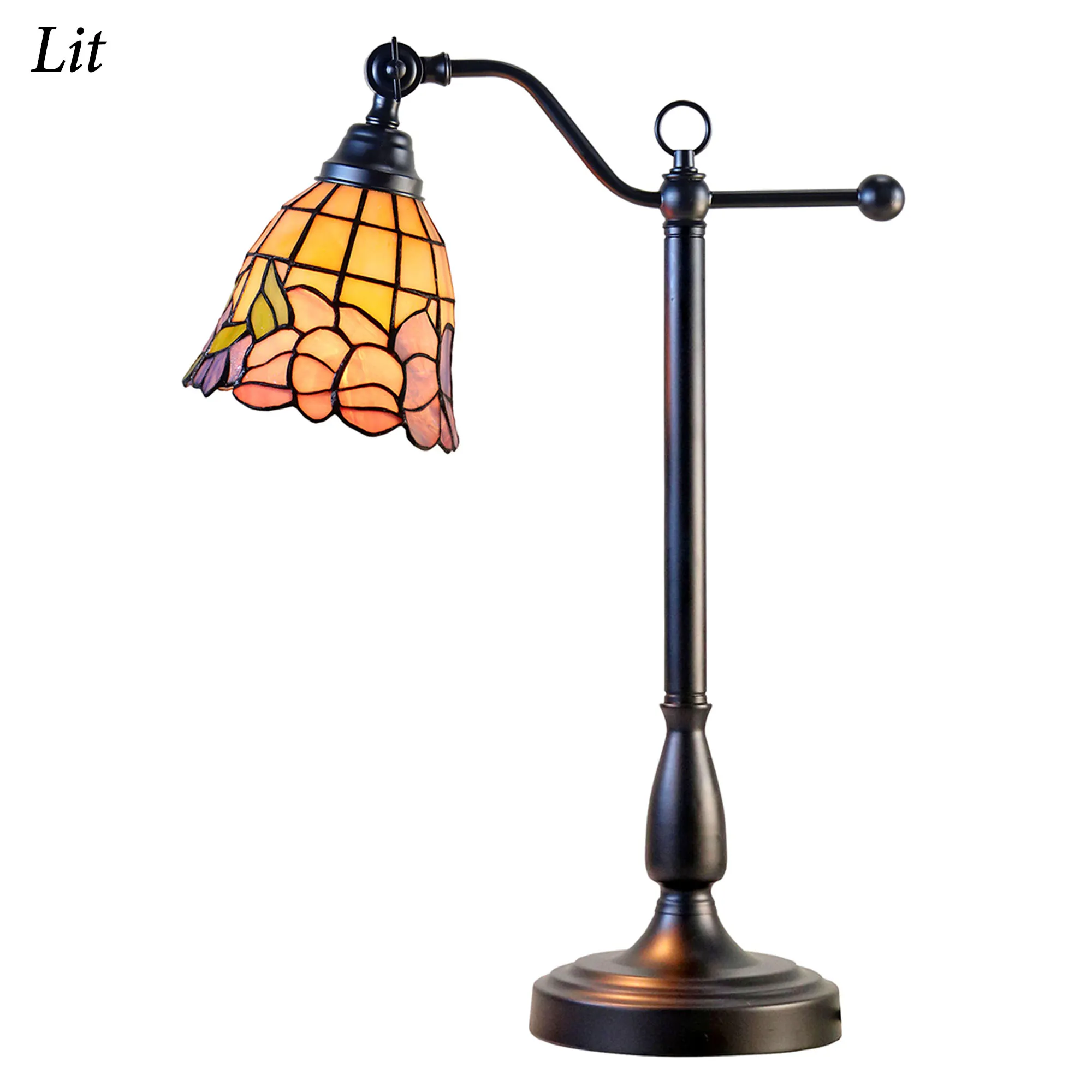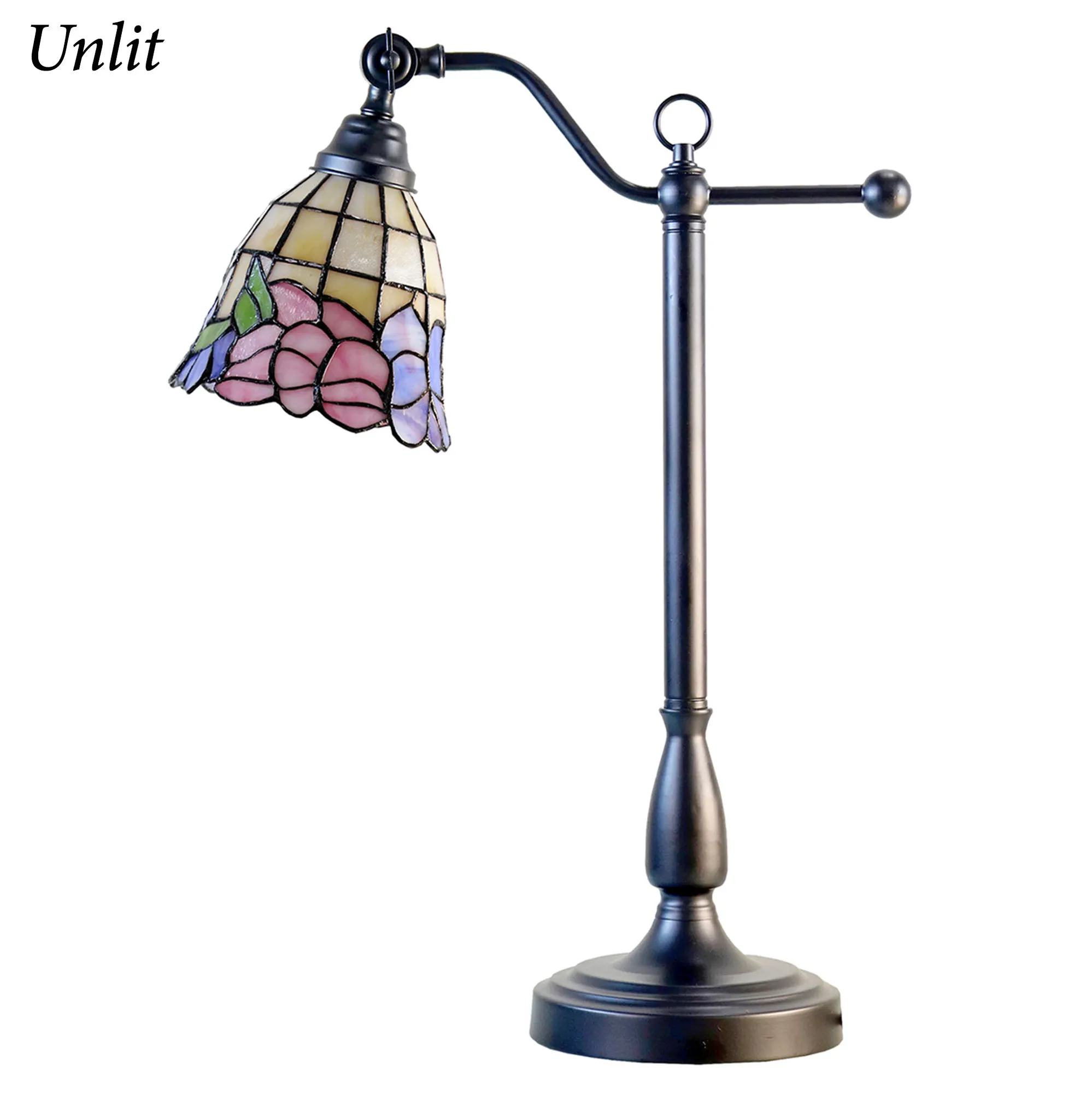 The Floral Tiffany Art Glass Desk Lamp is stained glass and metal.