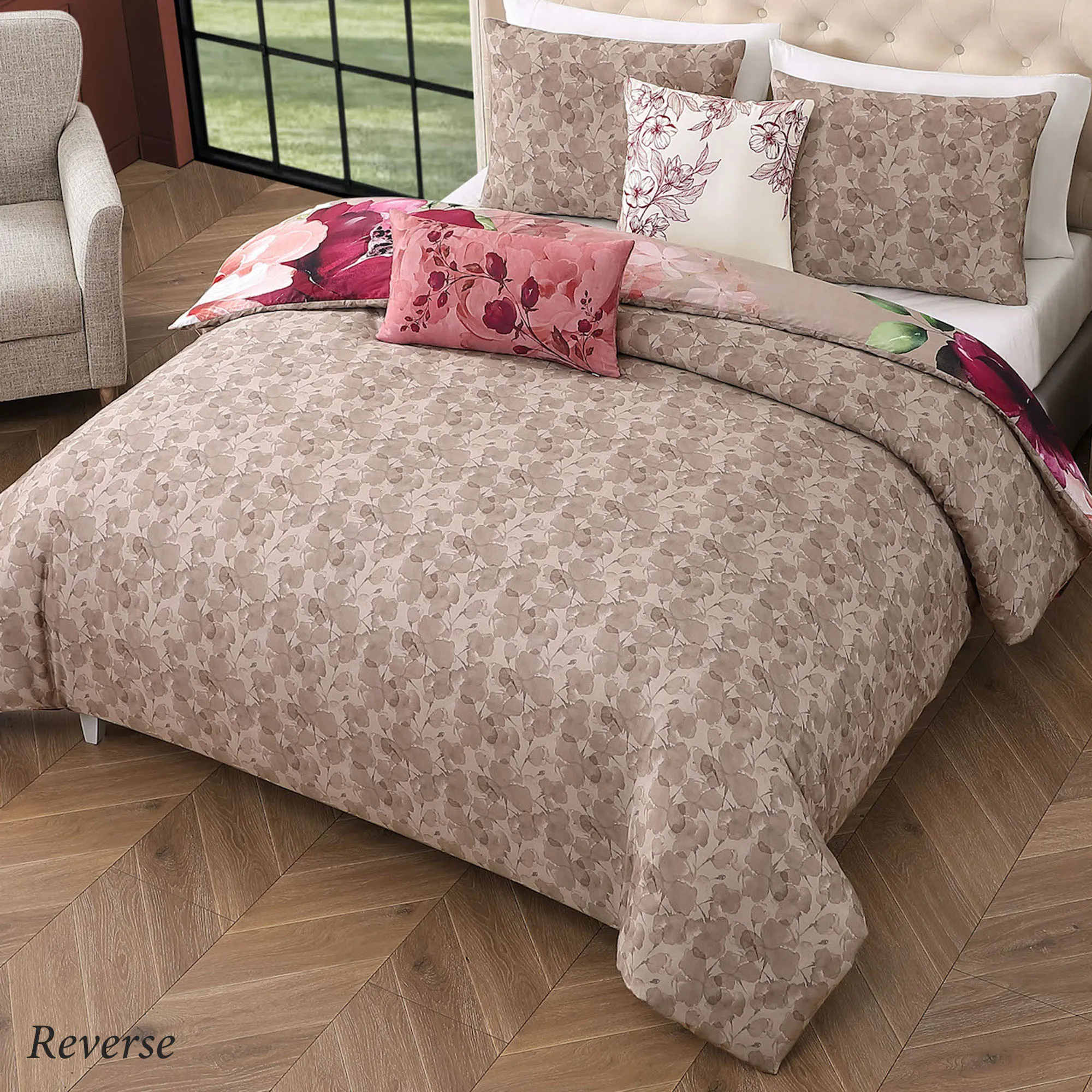 Florence Floral Reversible Light Taupe Flower Blossom 5 pc Comforter Bed Set