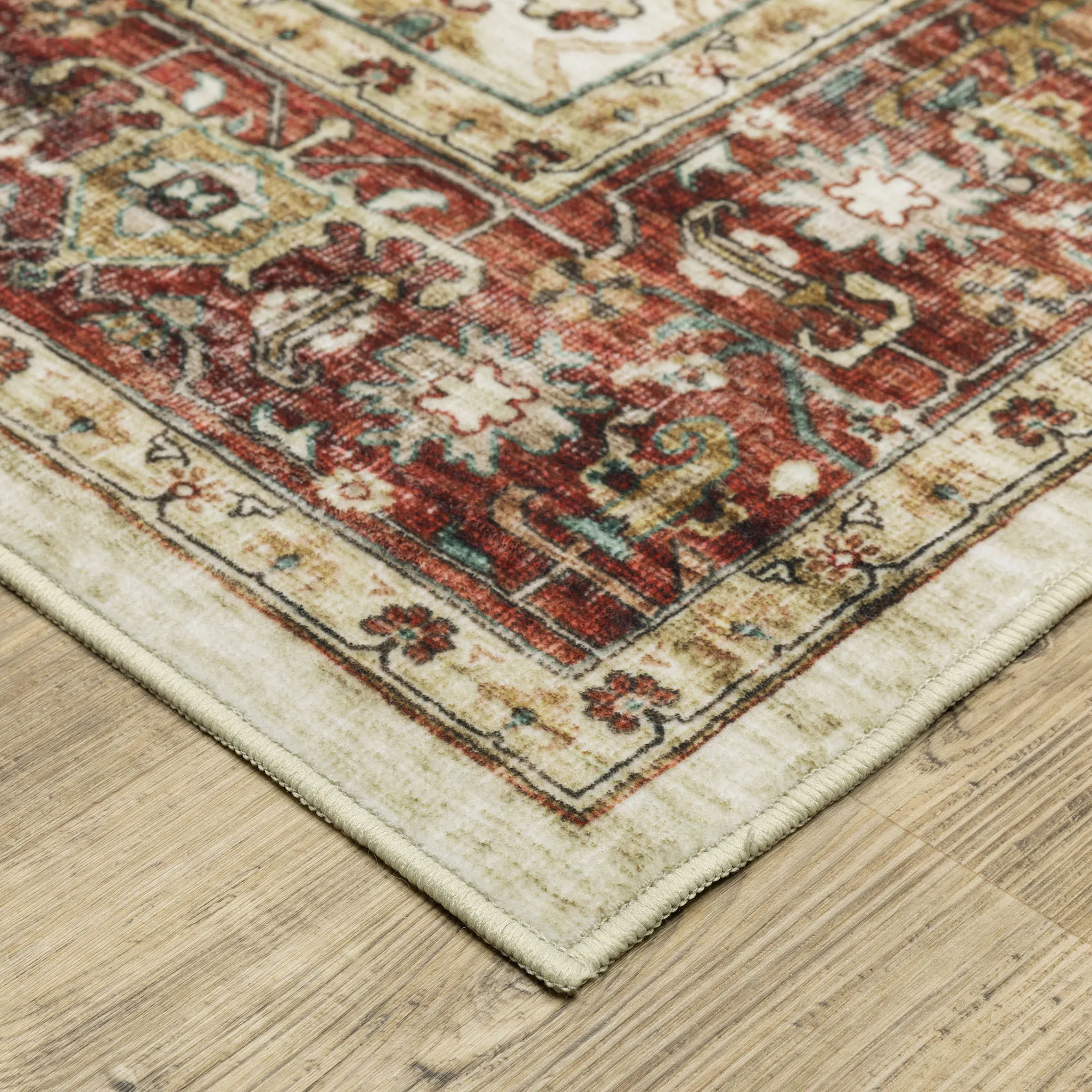 Florence Machine Washable Ivory and Brick Persian Style Area Rugs