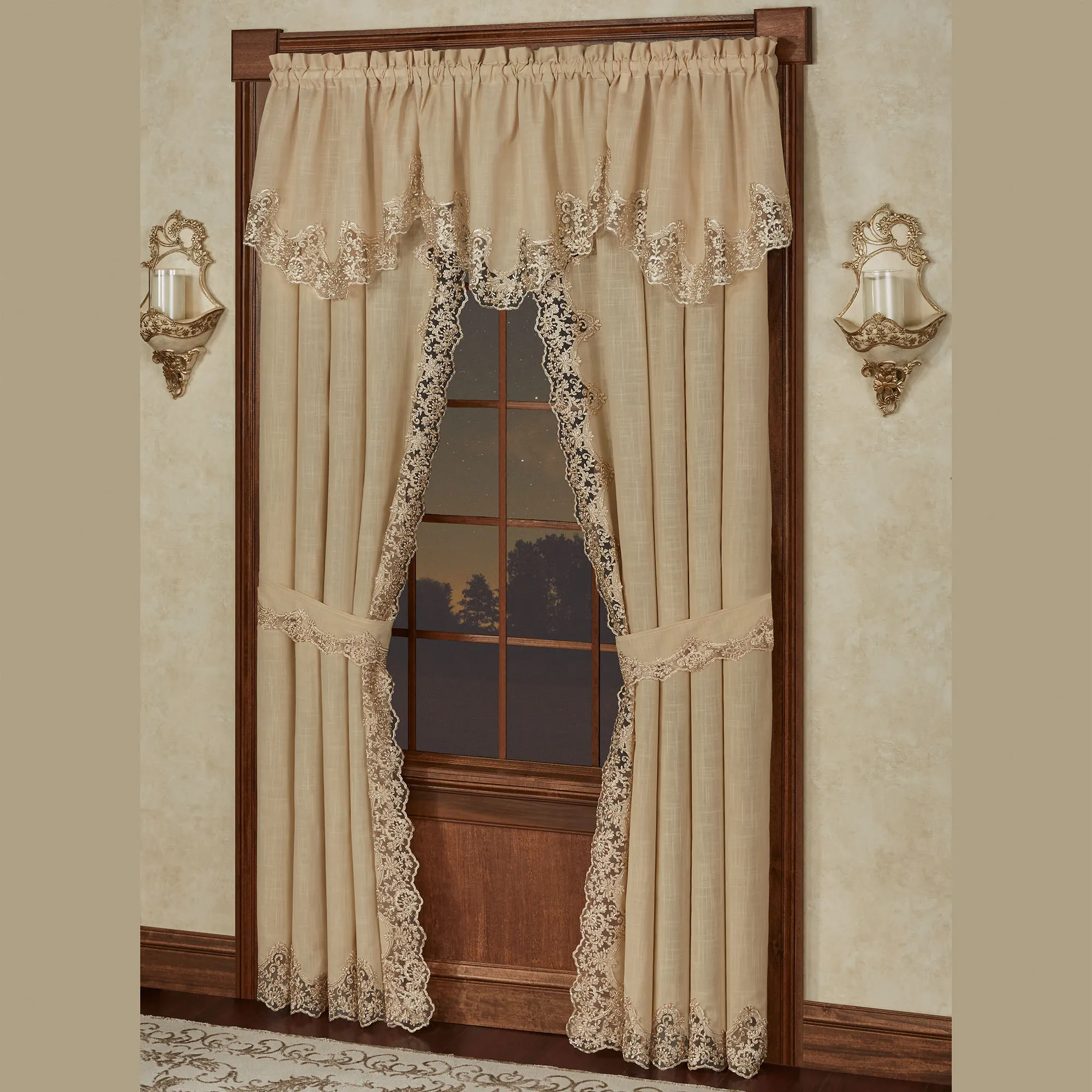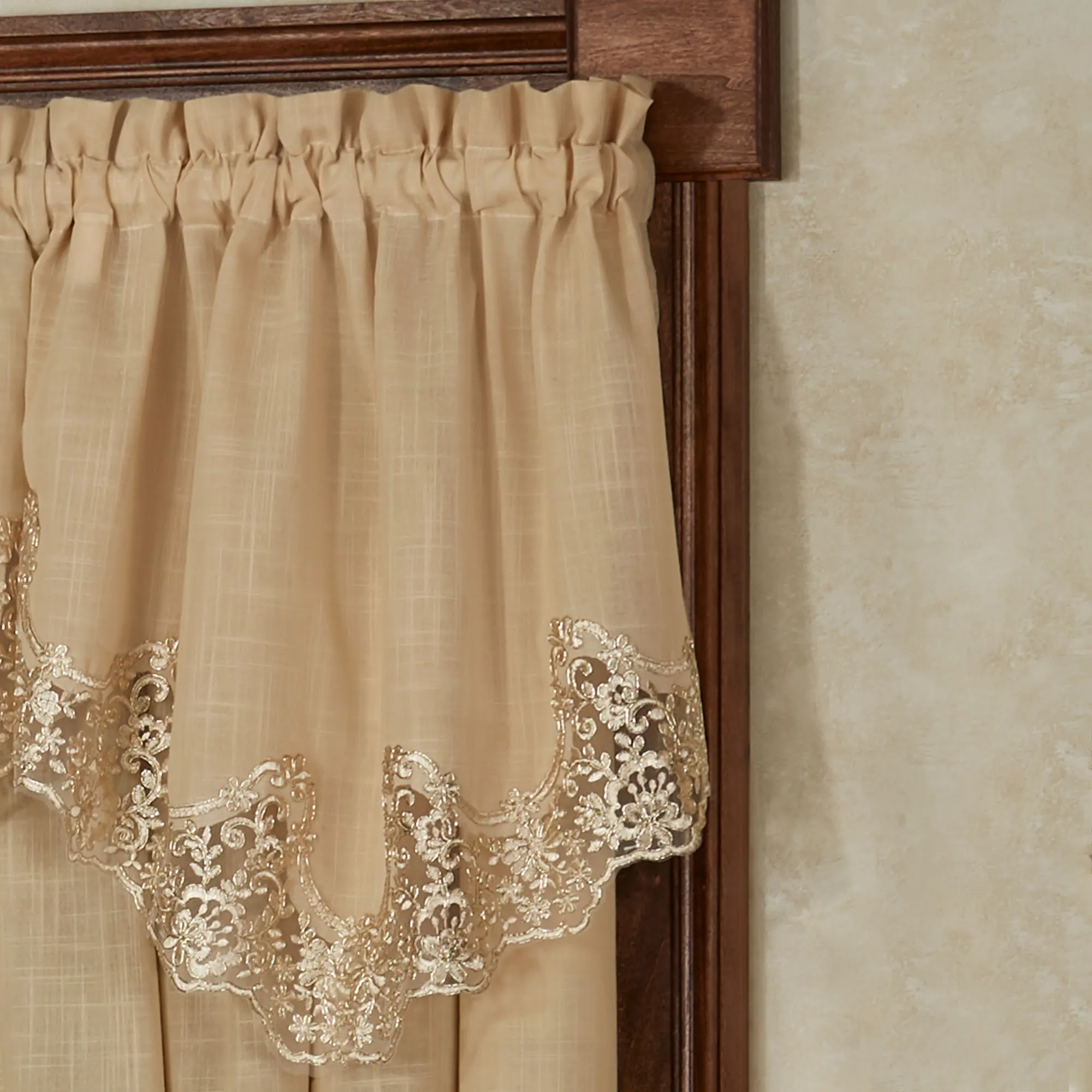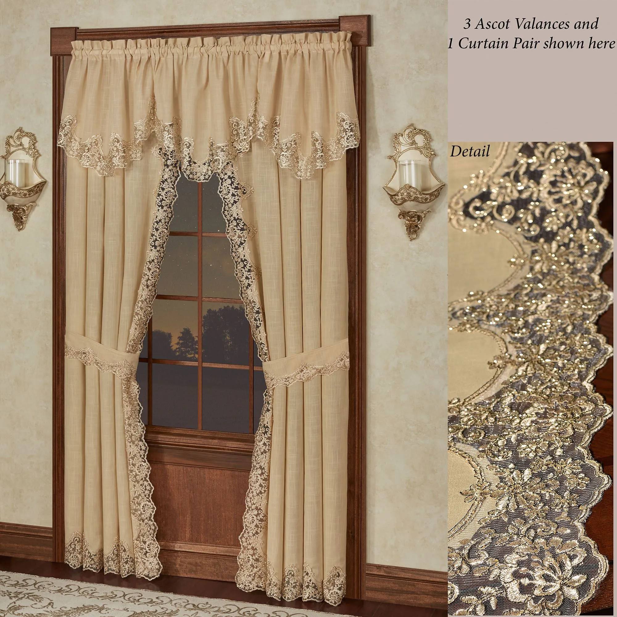 Florentina Antique Gold Lace Trim Ascot Window Treatment