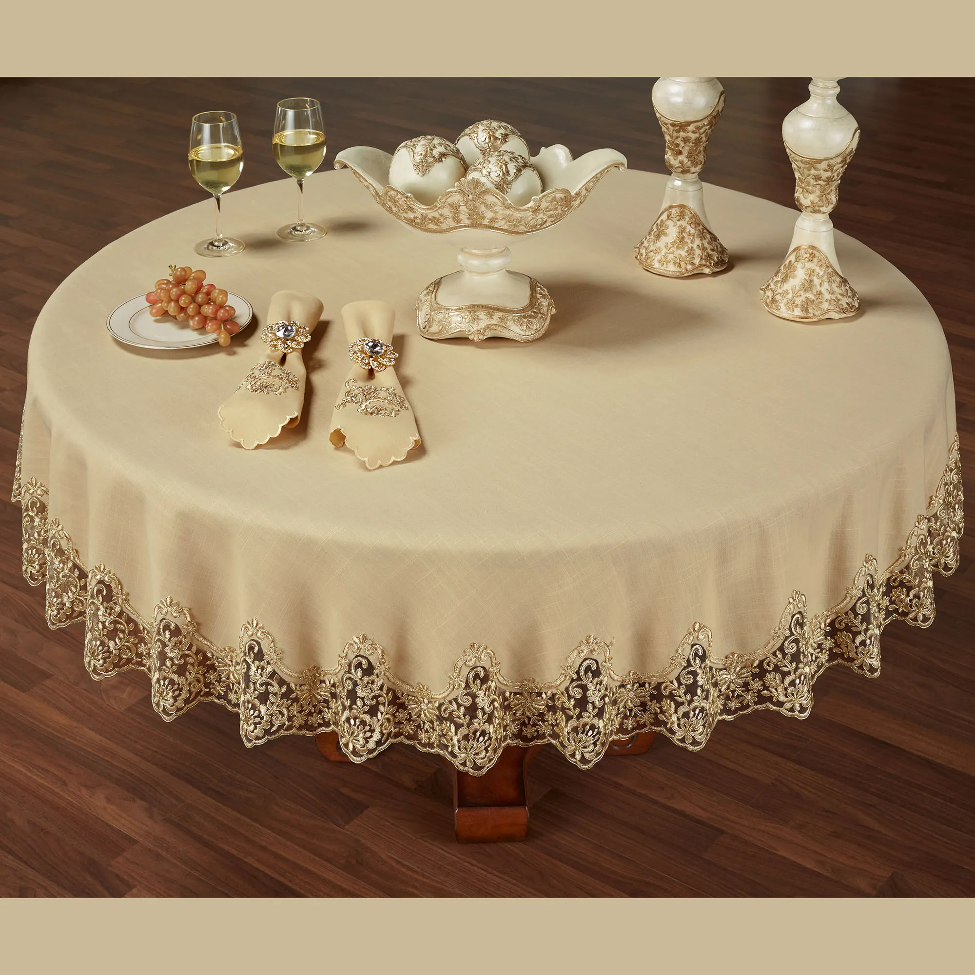 Florentina Antique Gold Lace Trim Round Tablecloth