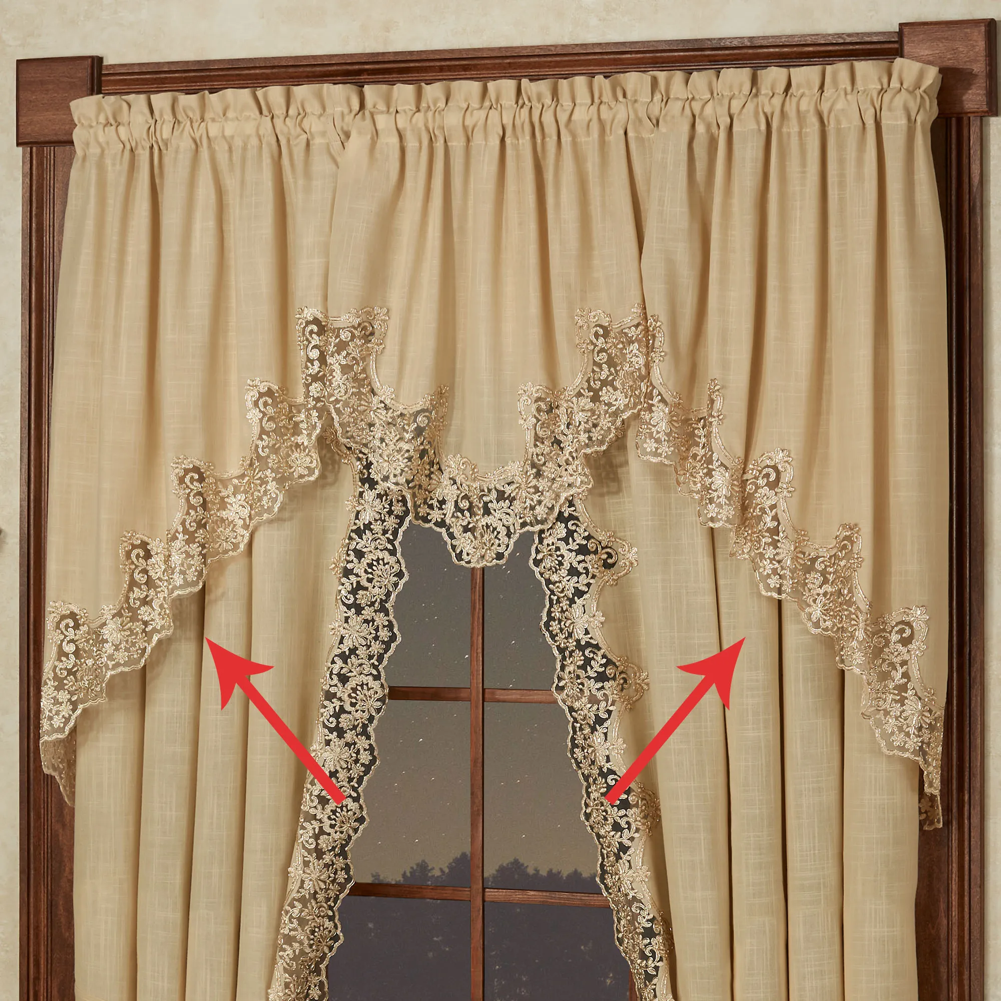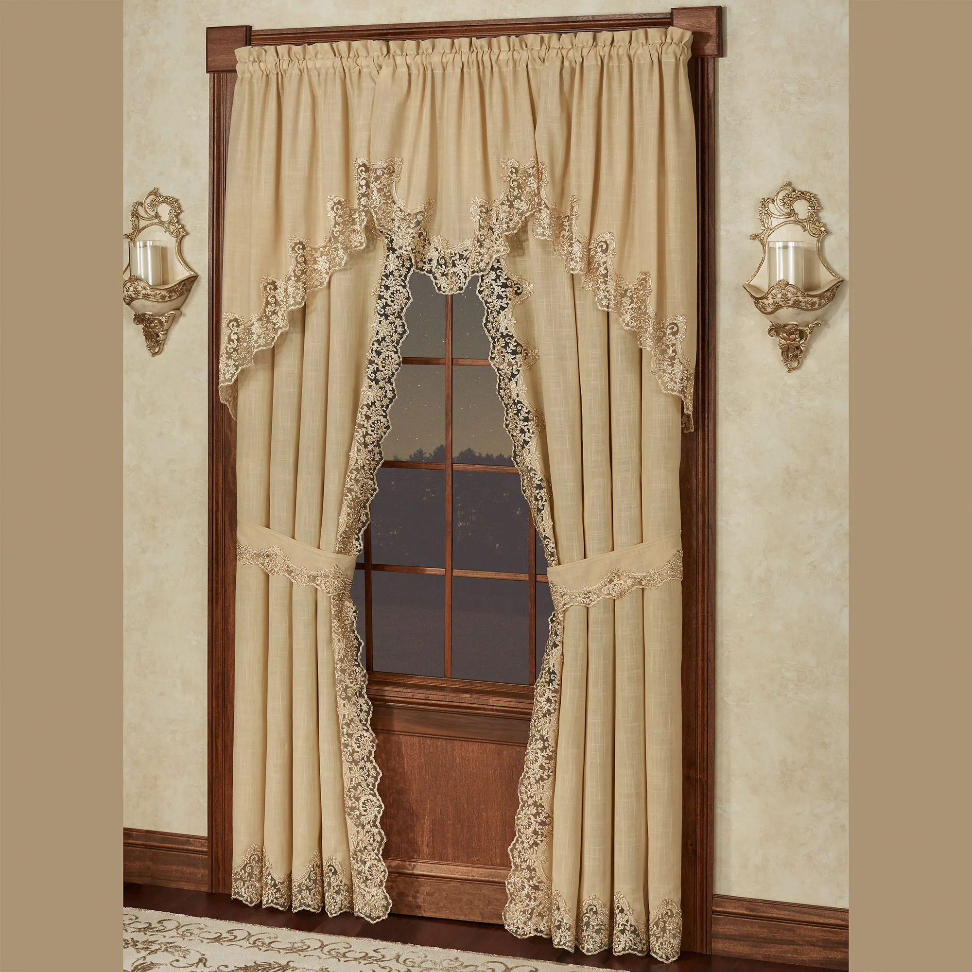 Florentina Antique Gold Lace Trim Swag Window Treatment