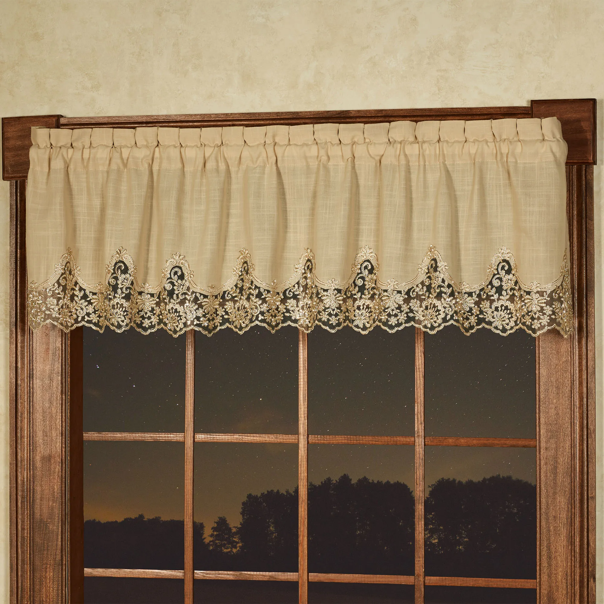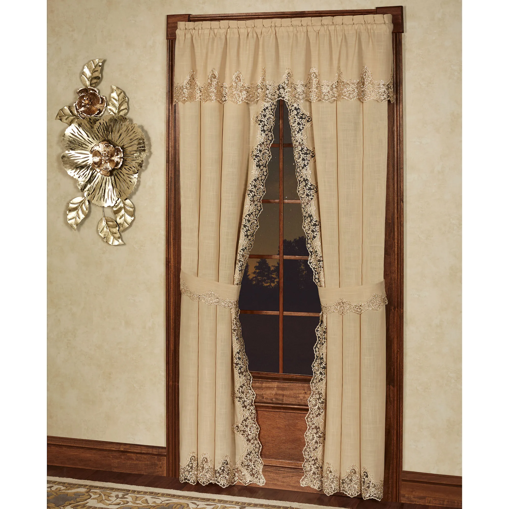Florentina Antique Gold Lace Trim Tailored Window Treatment