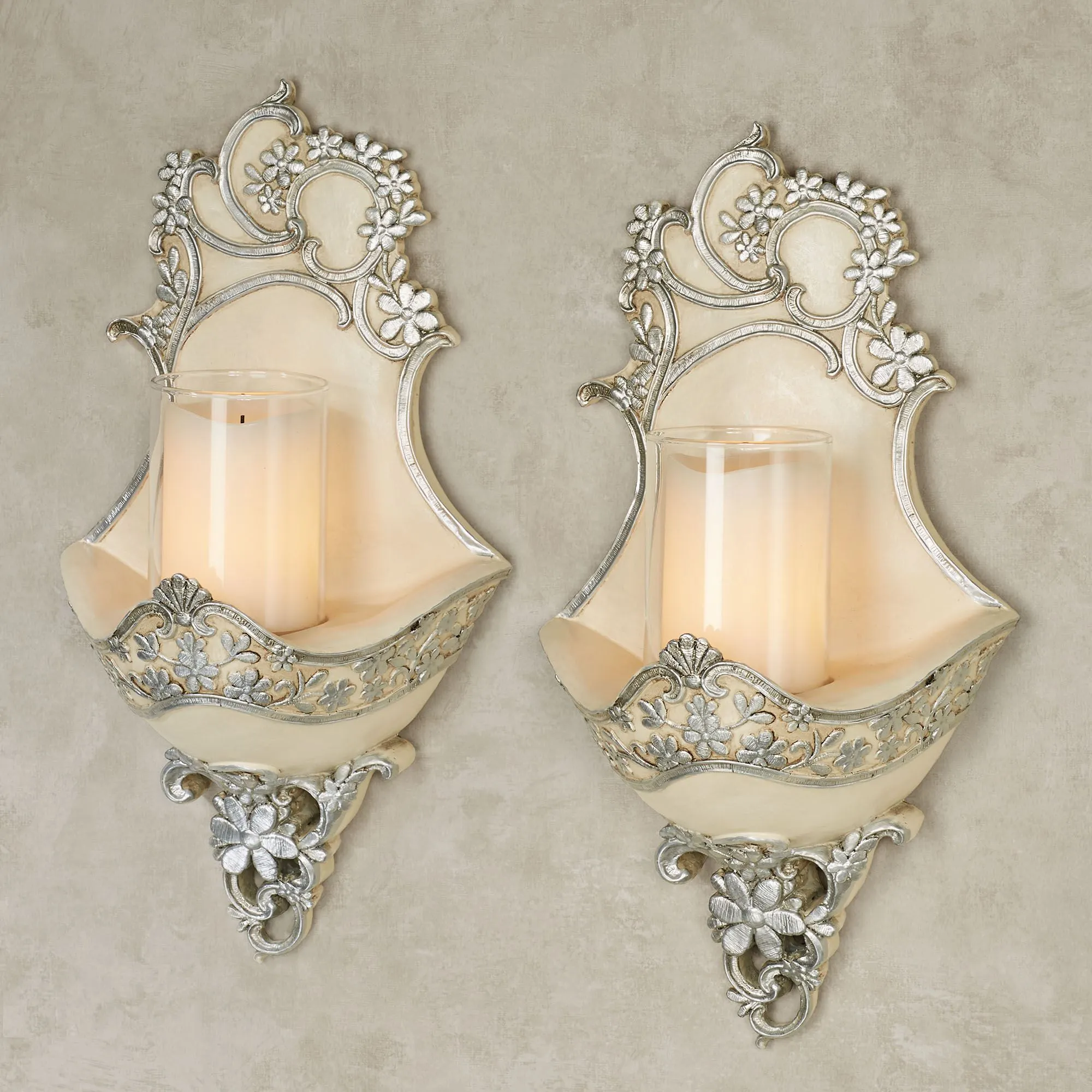 Floressa Ivory and Silver Traditional Hurricane Wall Sconce Pair