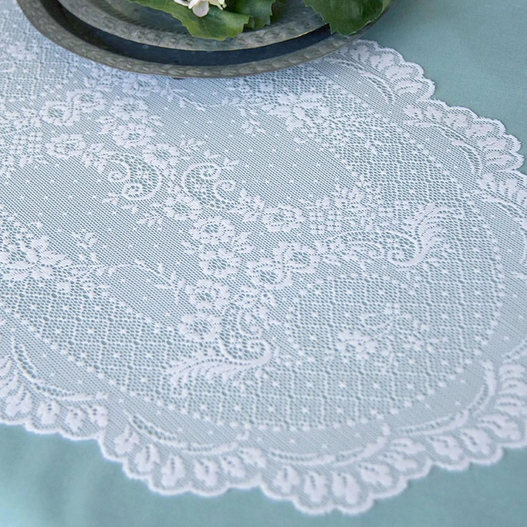 With a charming appeal, the Floret Lace Placemat Set decorates your home with intricately detailed floral motifs. Proudly made in the USA, the solid color polyester placemats feature a fine-gauge lace finished in scalloped edges. Placemats are each 20"x14"; sold as a four-piece set. Machine washable.