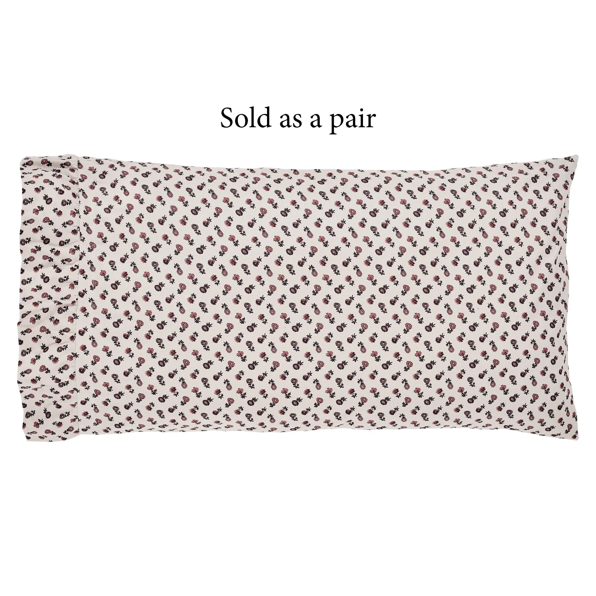 Pillowcase Pair has mini florals on beige and 4"L hems. Choose Standard/Queen Pair or King Pair.