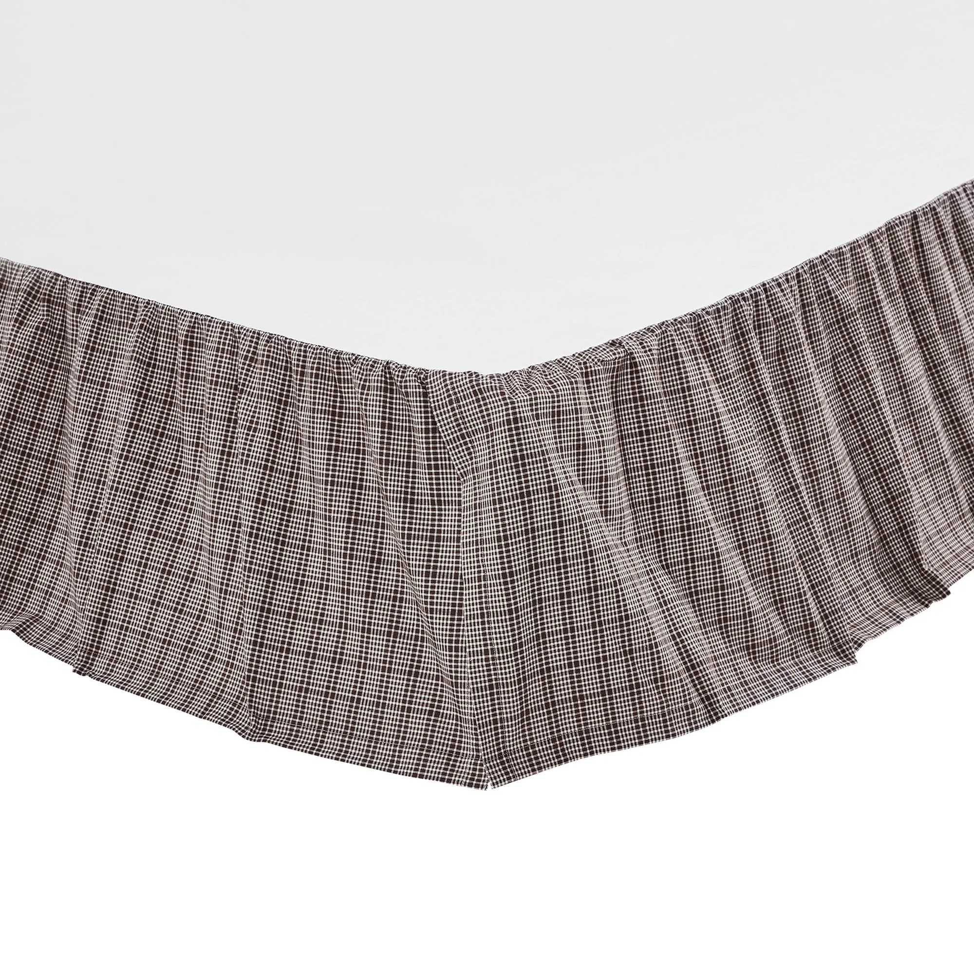 Gathered Bedskirt is coffee brown and white plaid with split corners in the 16" drop. Choose Twin, Queen, or King.