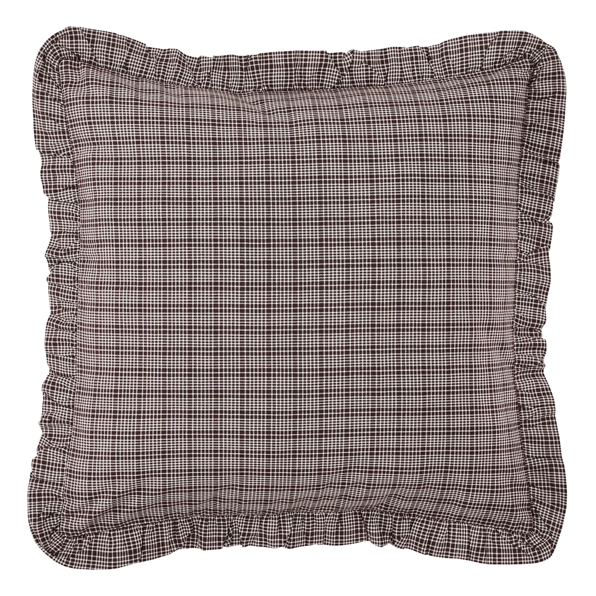 European Sham has the plaid print, a ruffled flange, and a button closure.