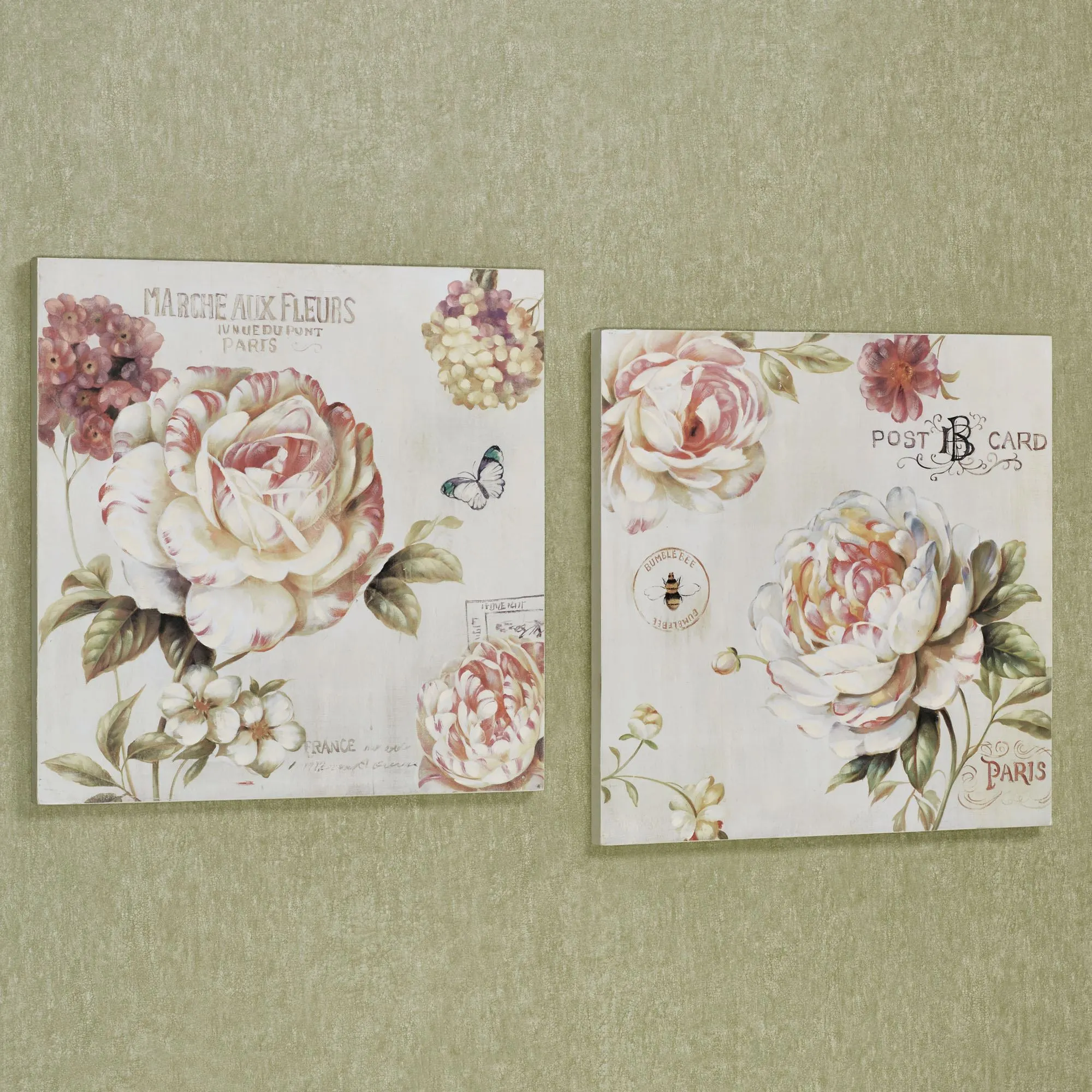 Fresh-picked from the Flower Garden, these white blossoms unfurl beautiful petals tipped with red, pink, and yellow to grace your home with splendid sweetness. Created in a technique similar to a pastel chalk drawing, each wooden wall plaque in this set features lush flowers detailed with script and French accents. Each measures 24"sq.x1.5"D.
