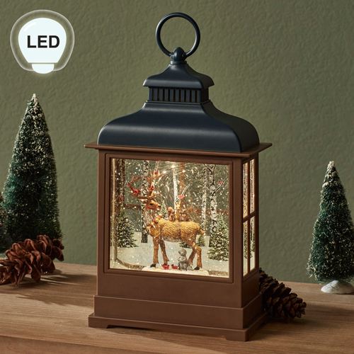 Forest Friends Winter Woodland Reindeer LED Lighted Swirl Lantern Glitter Globe