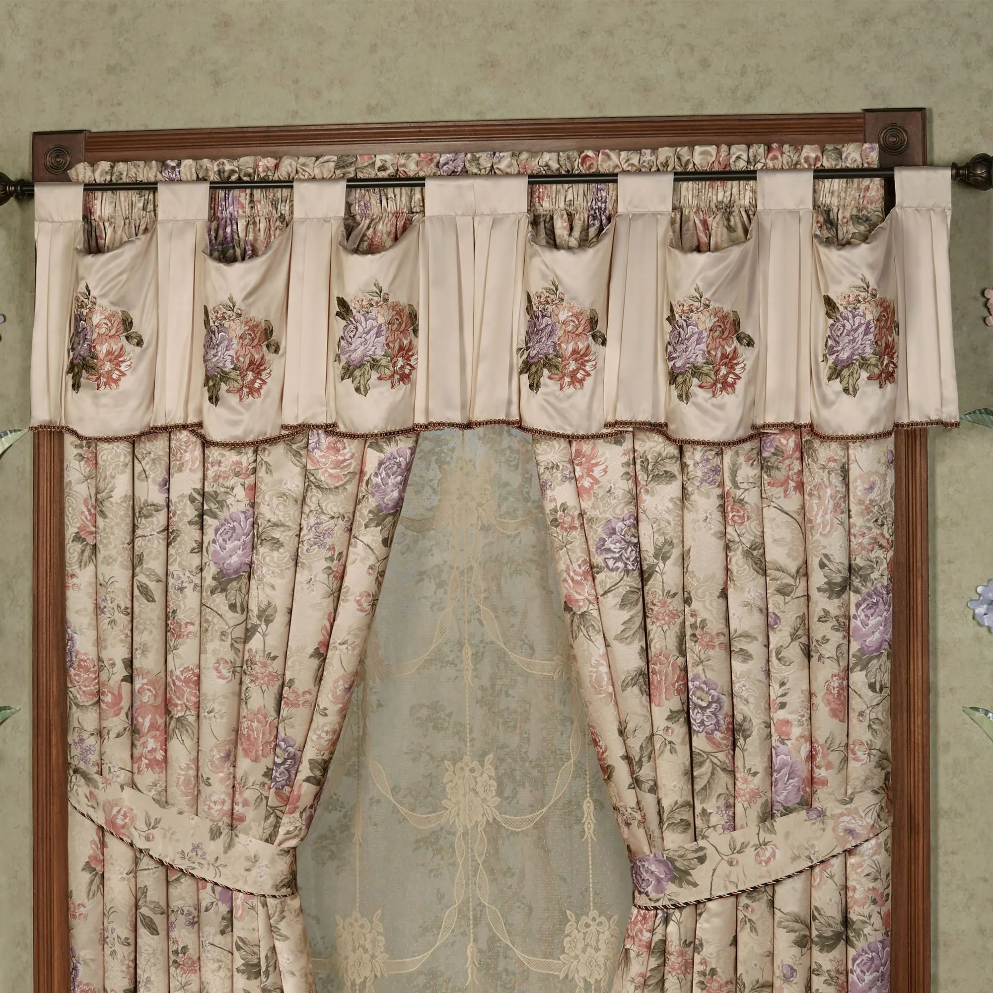 • Valance has floral embroidery