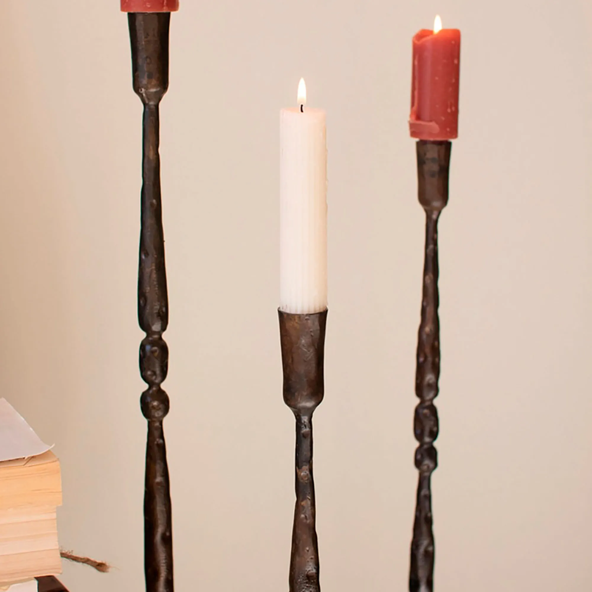 Forged Iron Tall Floor Candleholder Set of 3