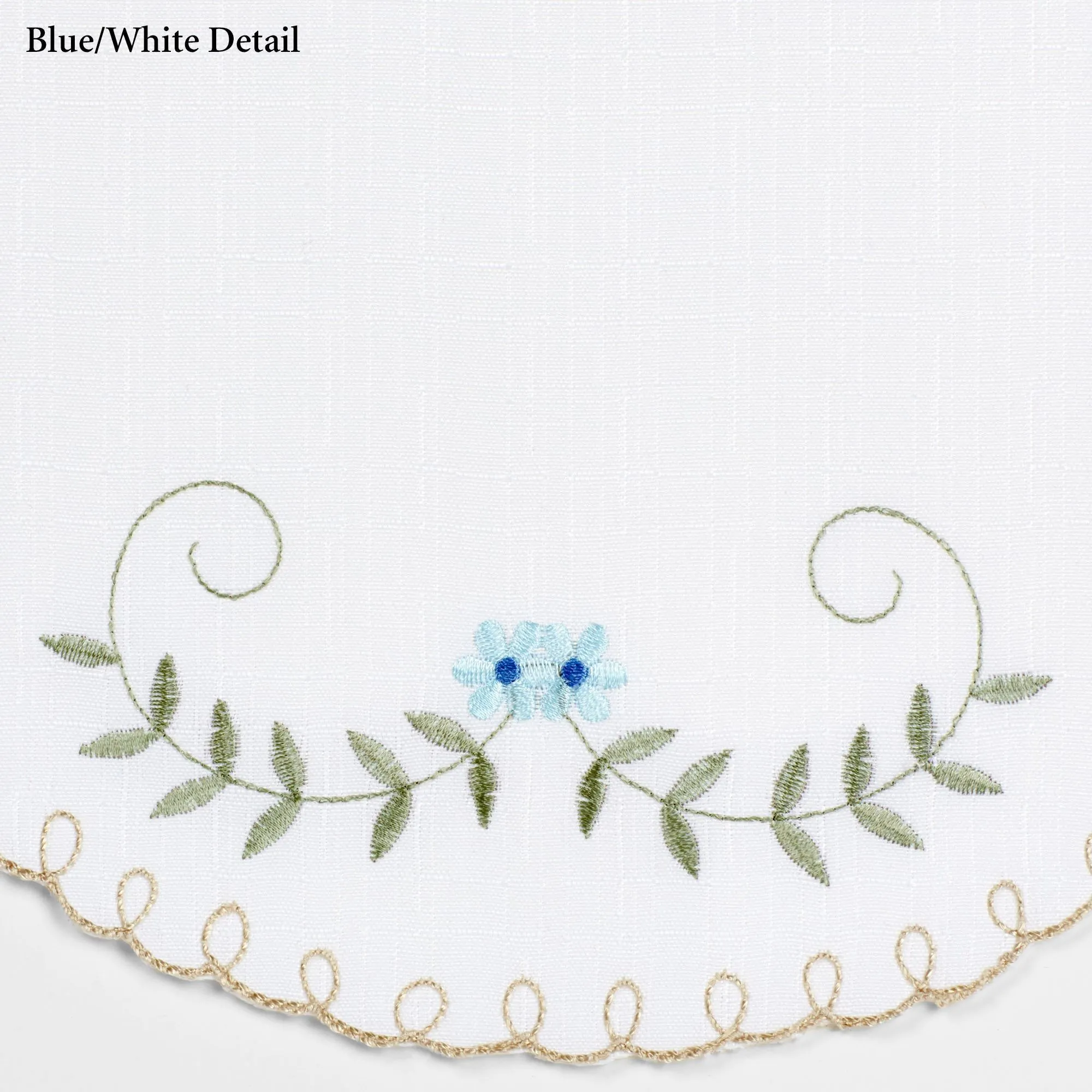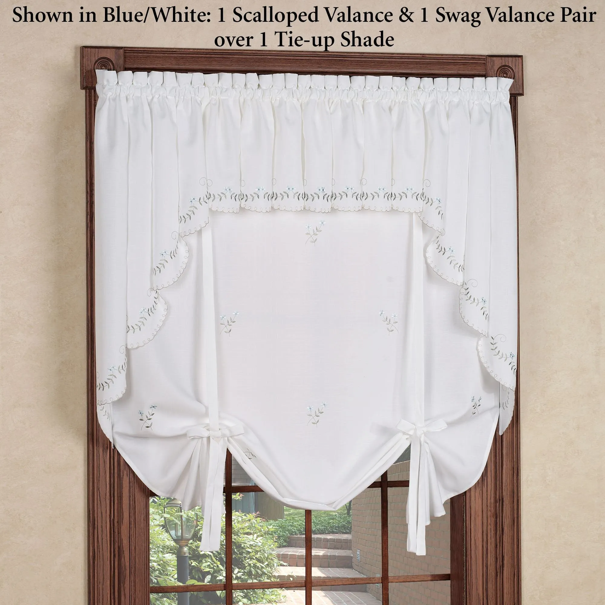 The casual and simply elegant Forget-Me-Not Tie-up Shade features a charming, embroidered floral and leaf motif. Window shade has ribbon ties on each side. Polyester tie-up shade has a 1.5" rod pocket. Measures 50"Wx63"L. Machine wash. Imported.