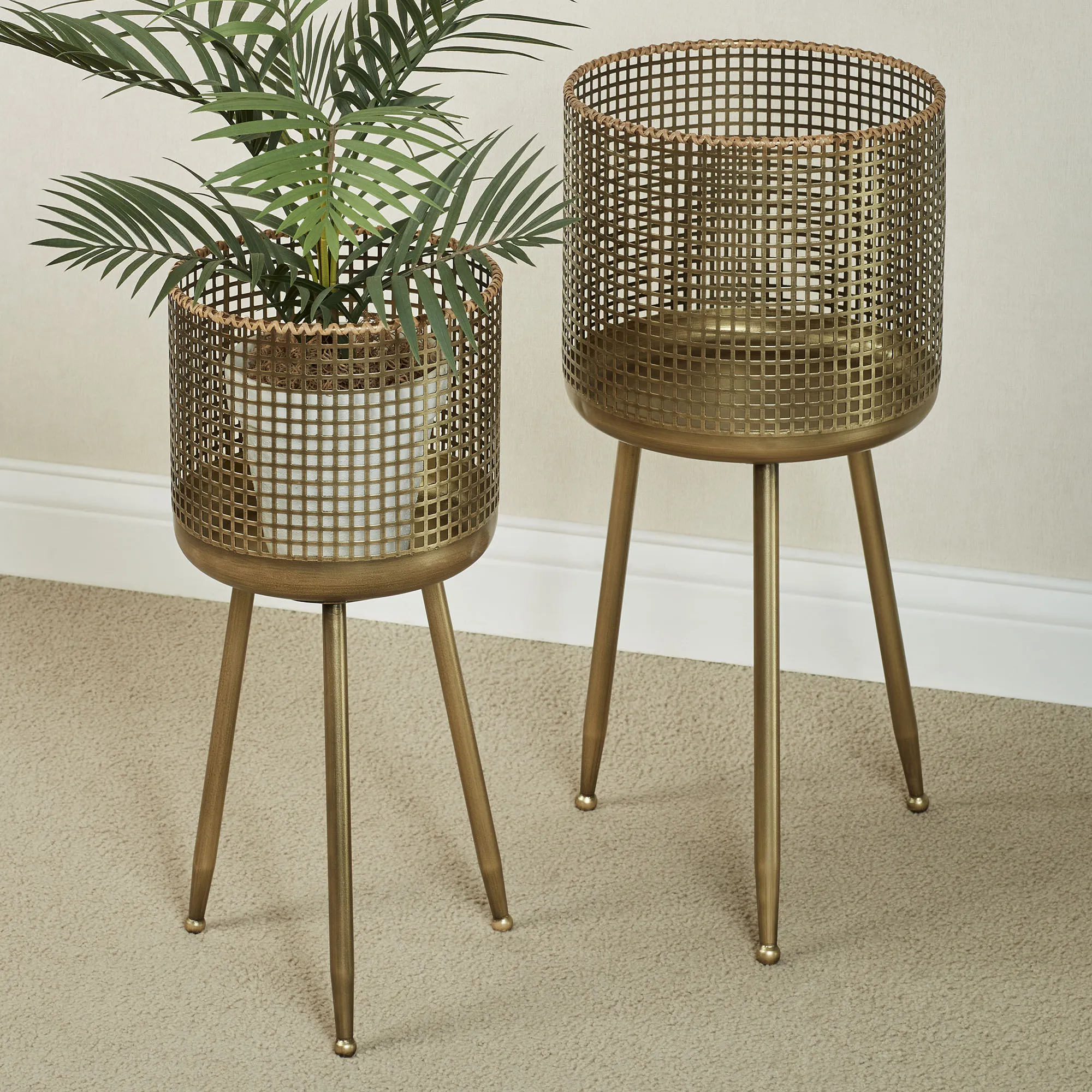 Foster Gold Openwork Metal Indoor Outdoor Planter Set