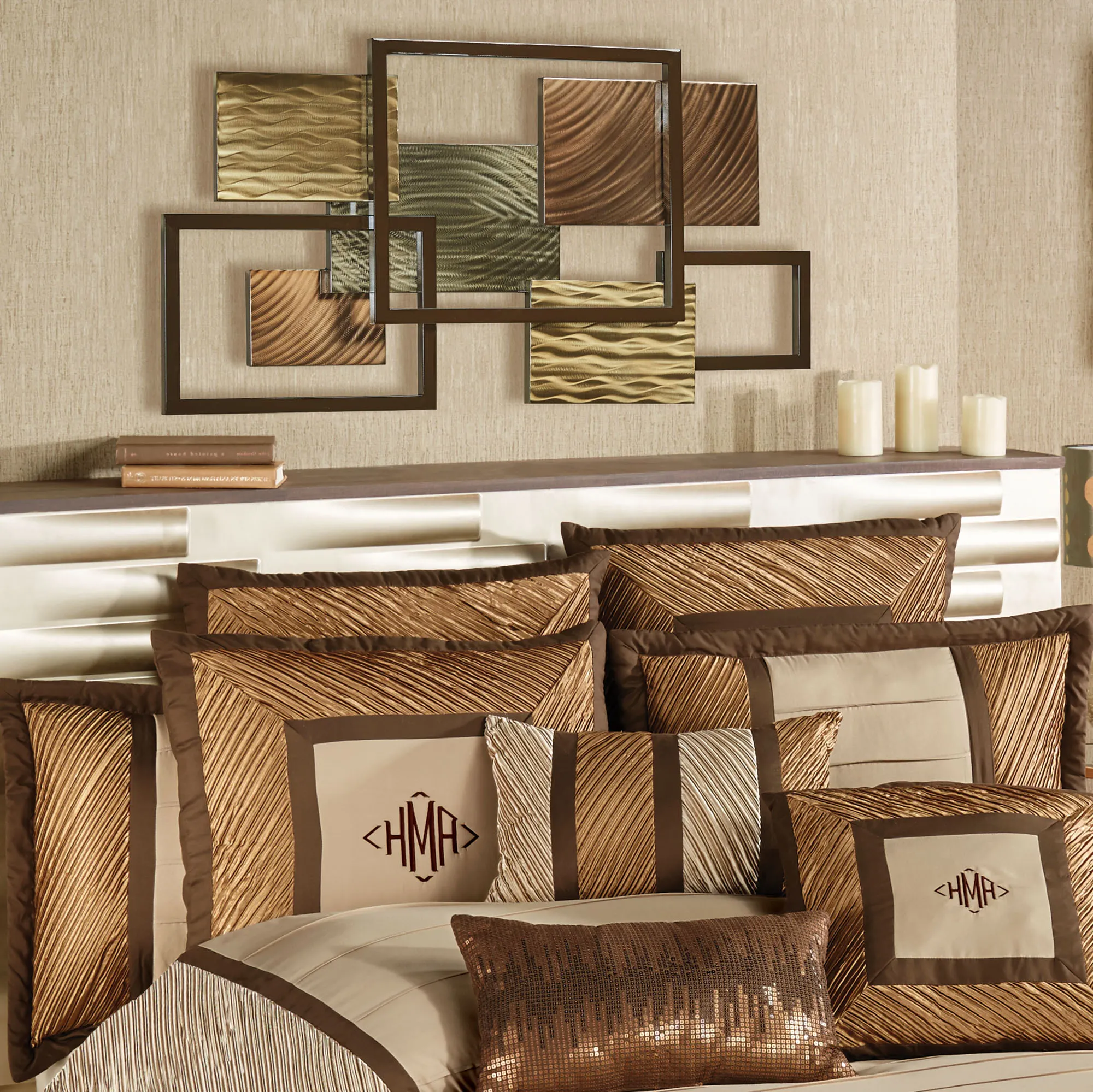 • Champagne bronze, gold, and platinum rectangles