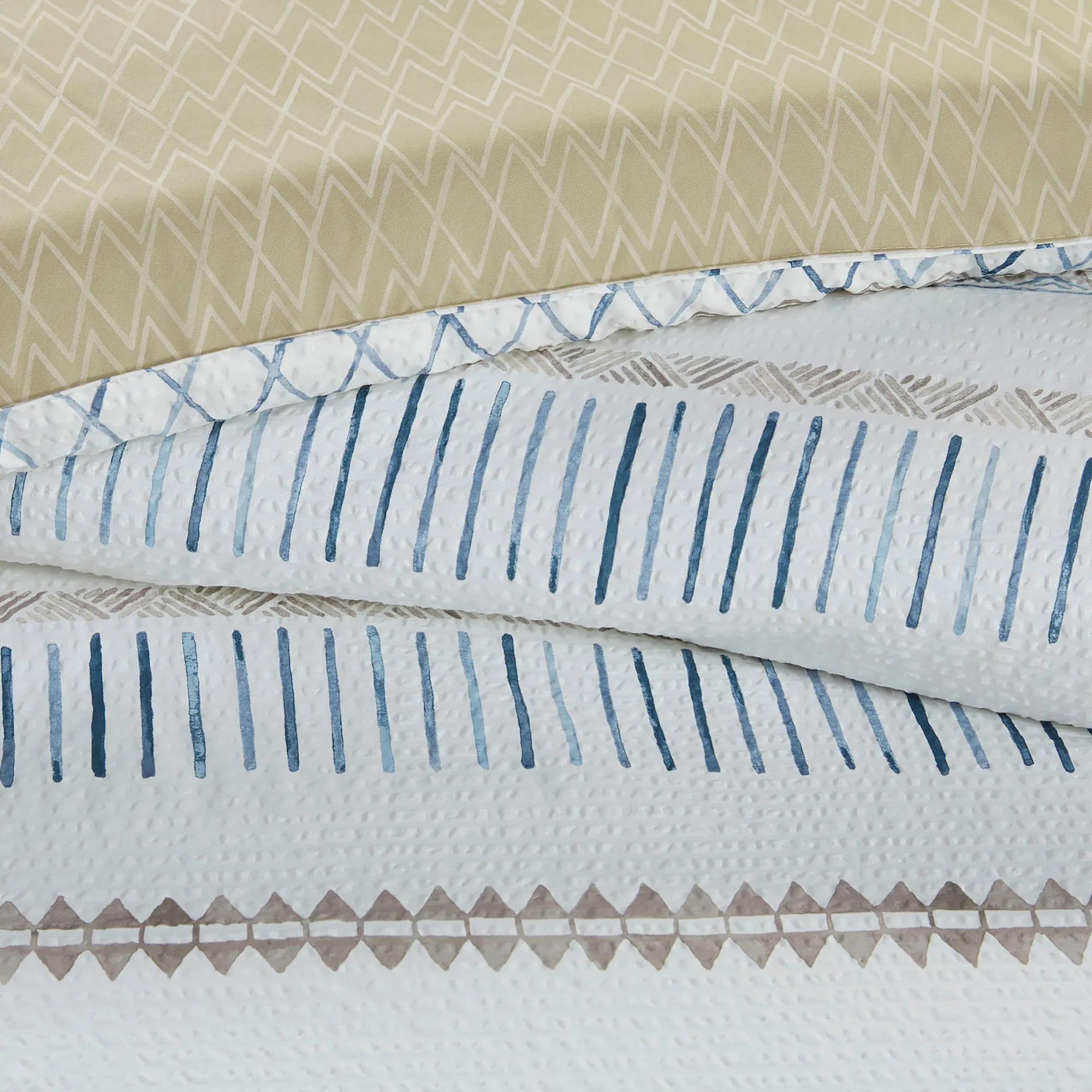 Fraser White Geometric Printed Seersucker 5 pc Comforter Bed Set by Madison Park