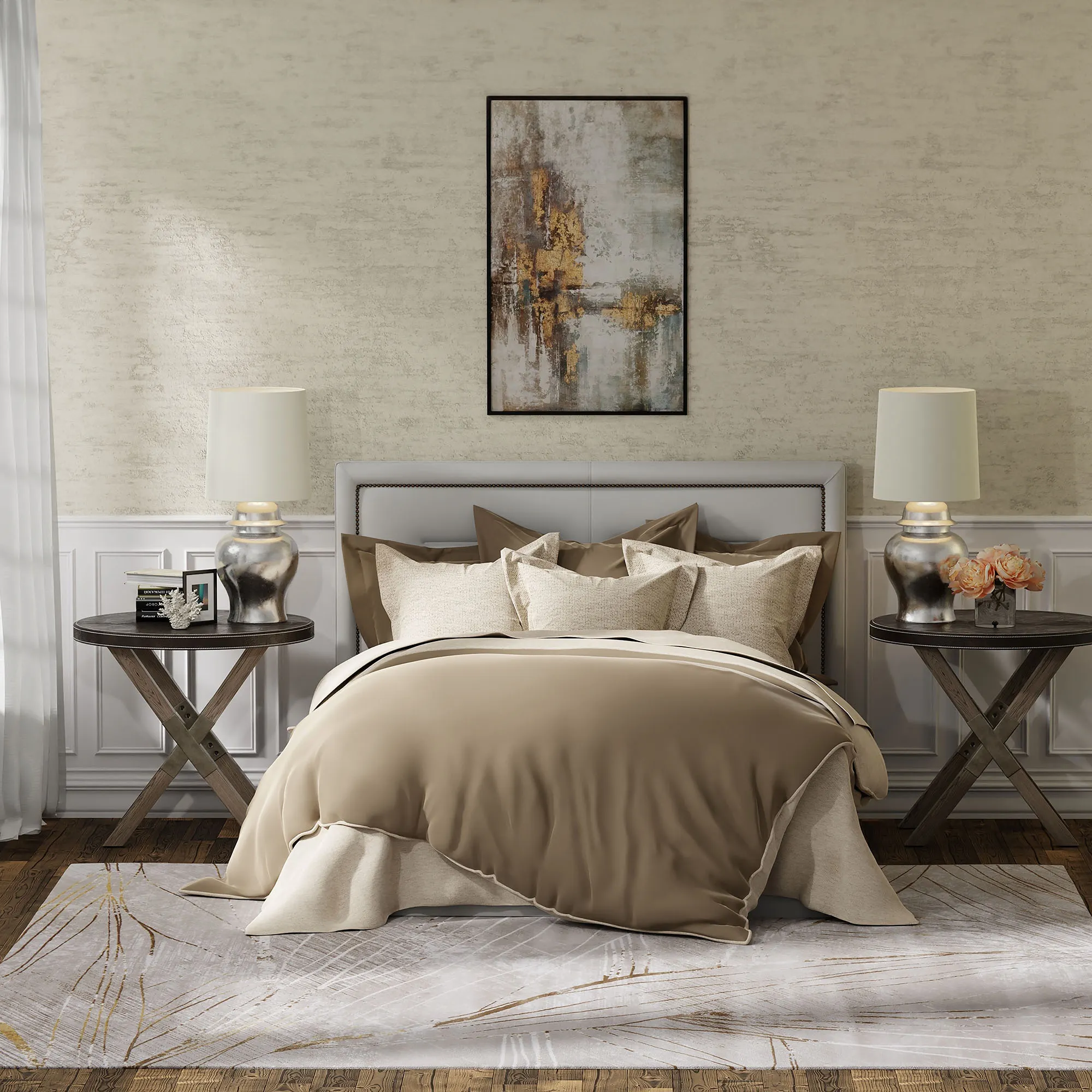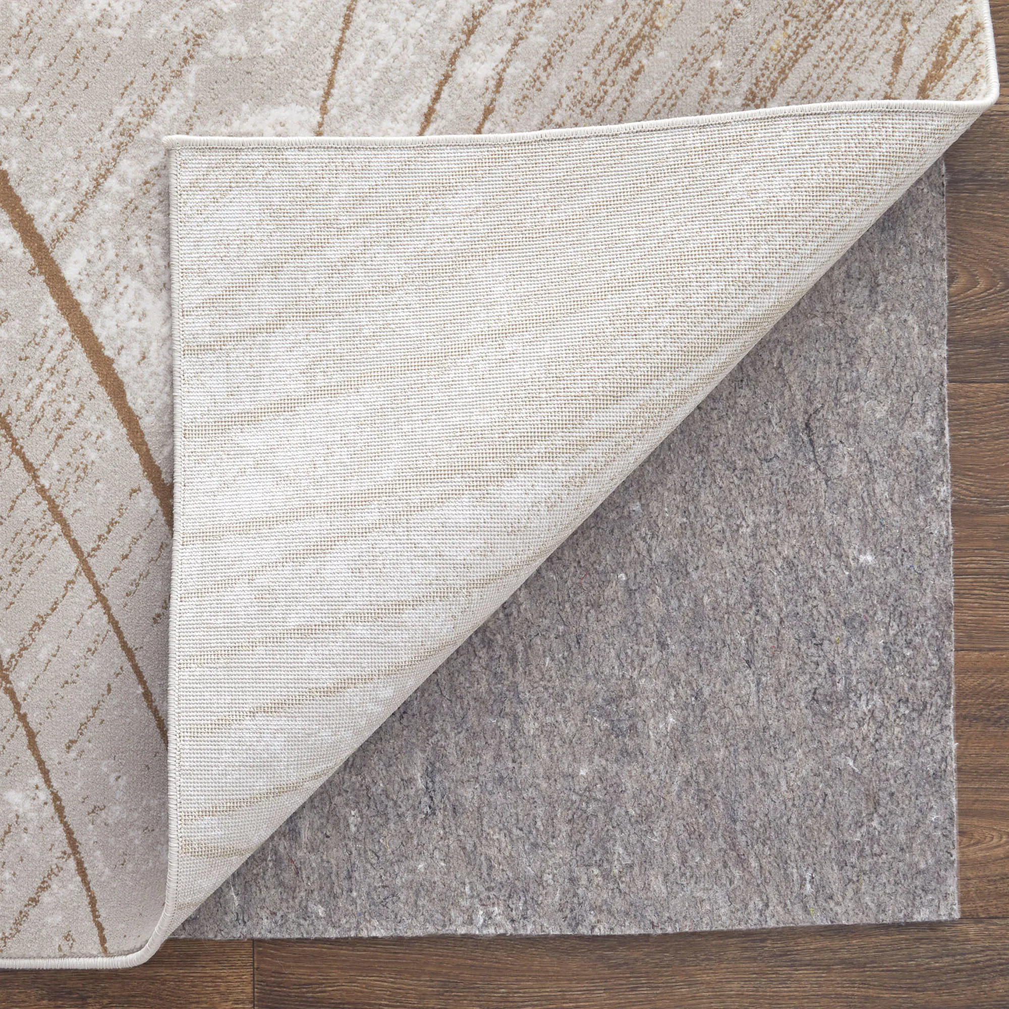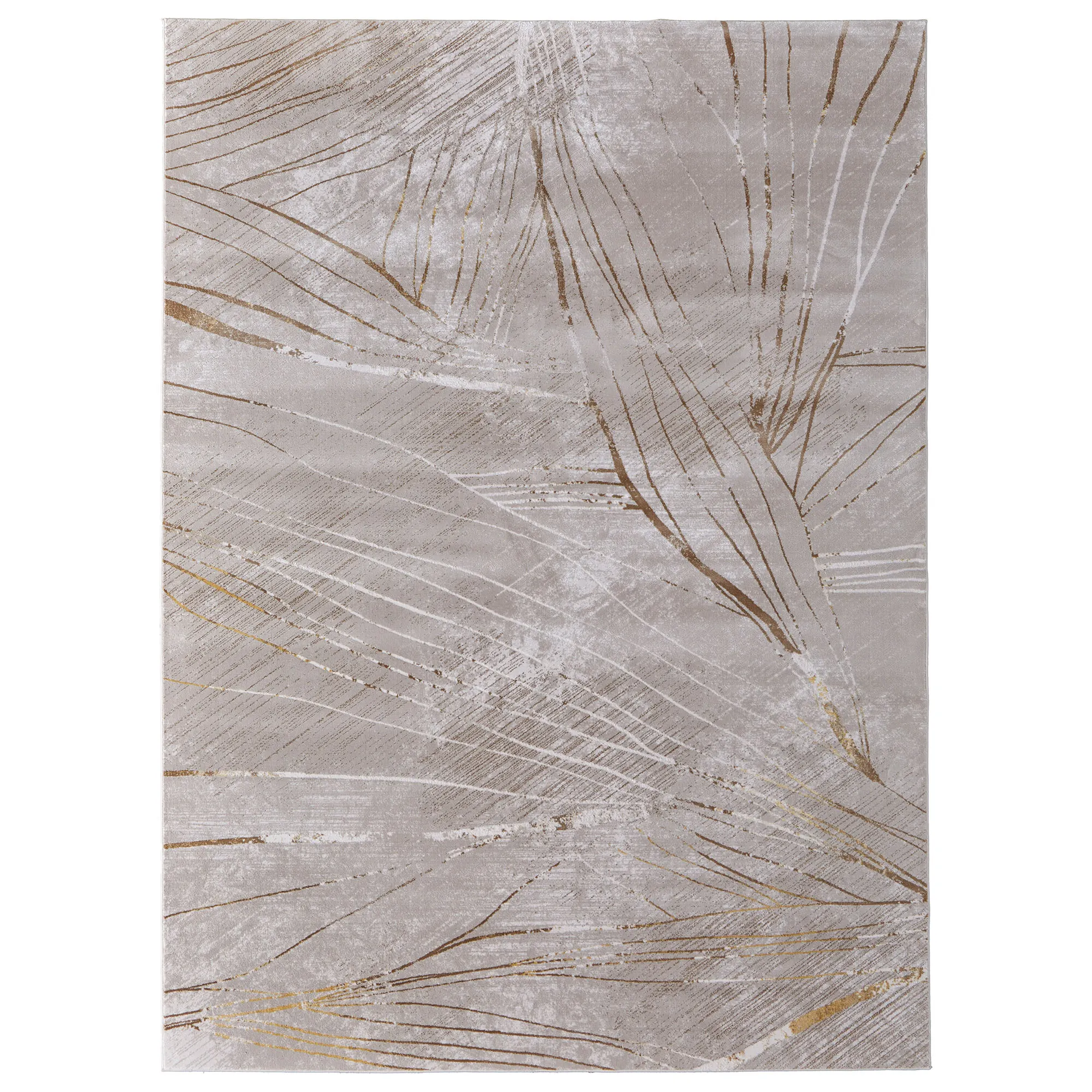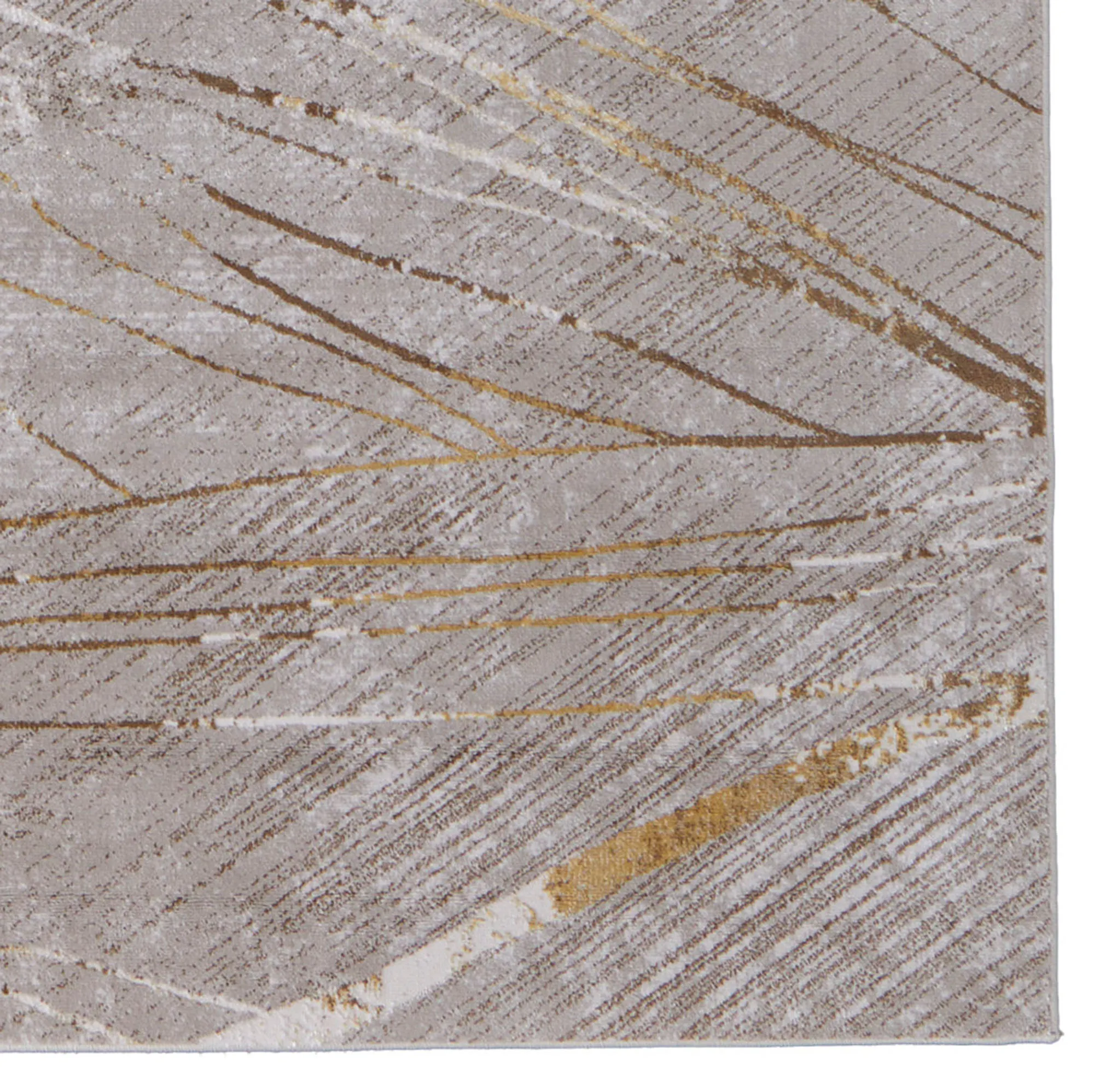 Brushstroke detailing adds movement to the neutral appeal of the Freya Area Rug. Power-loomed from a polypropylene/polyester blend, the .39" thick rug features ivory, beige, gray, and sterling shades alongside golden accent lines that offer a subtle shimmer. We recommend professional cleaning by a rug cleaner. Imported.