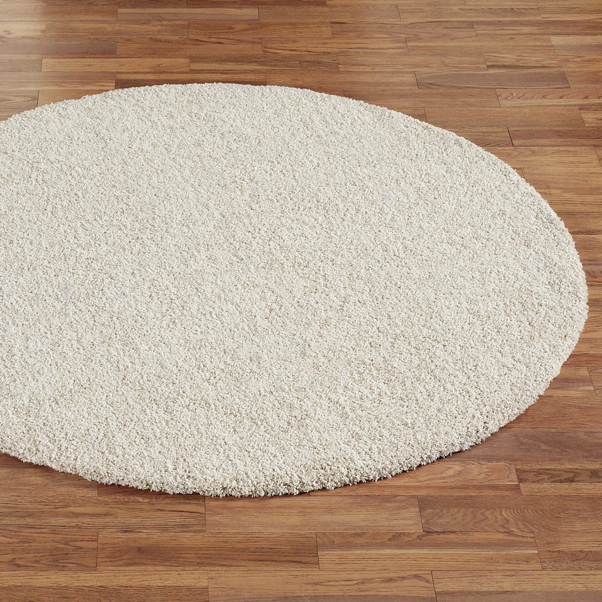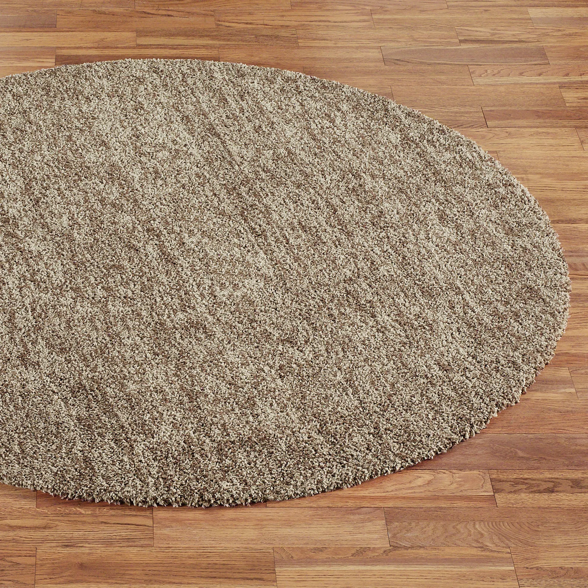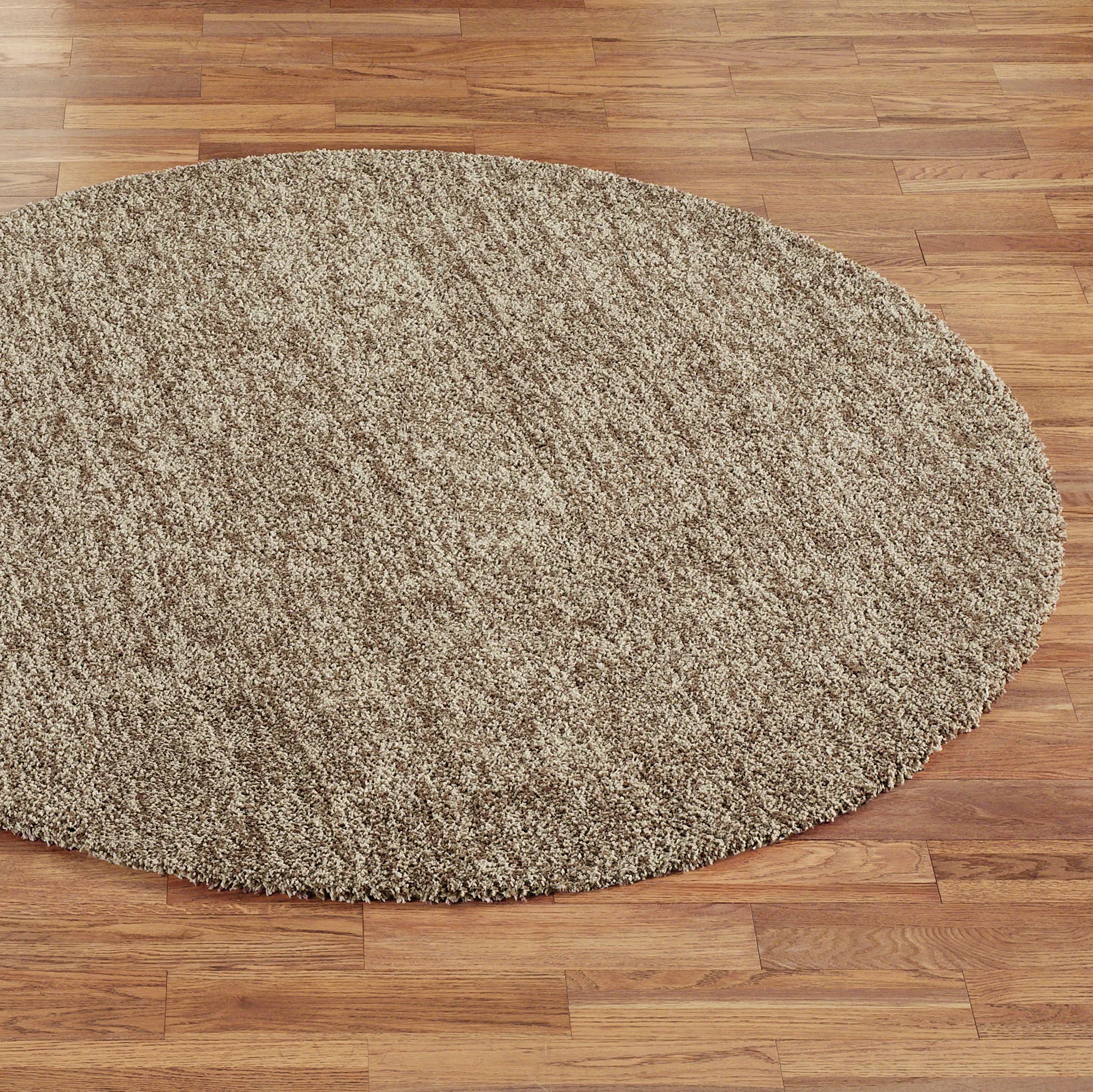 The Frosted Luxury Round Shag Rugs are polyester with cotton-covered latex backs. Imported.