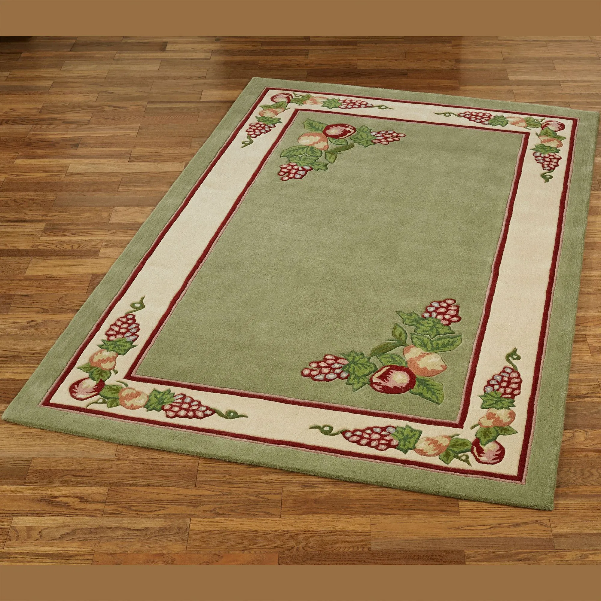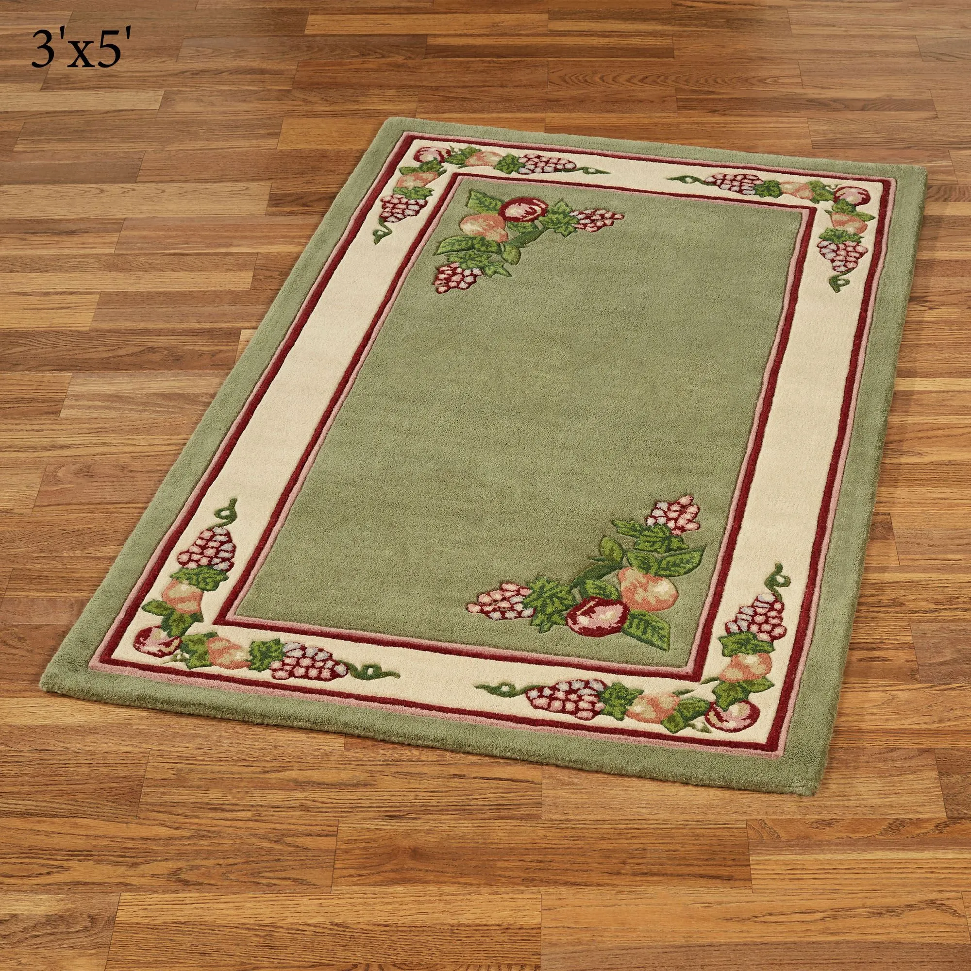 • Hand-tufted and handcarved fruit area rug