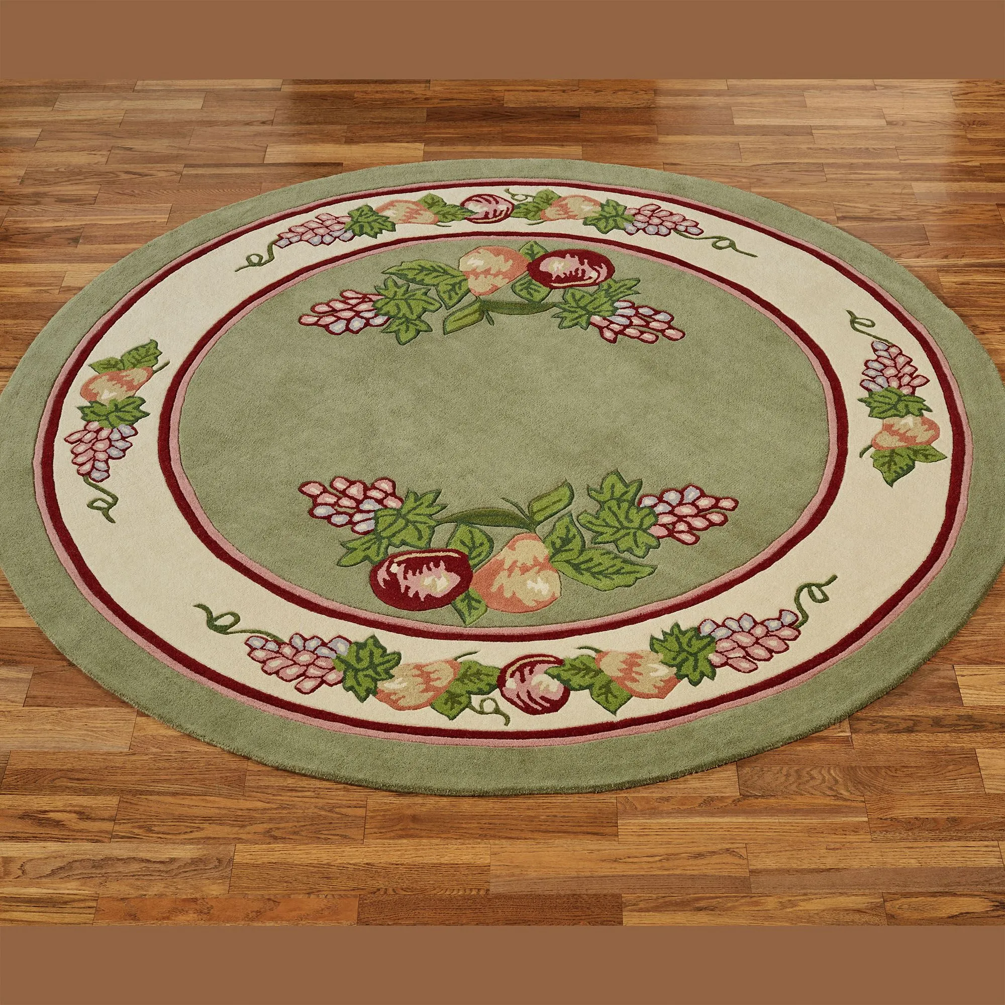 • Hand-tufted and handcarved fruit round rug