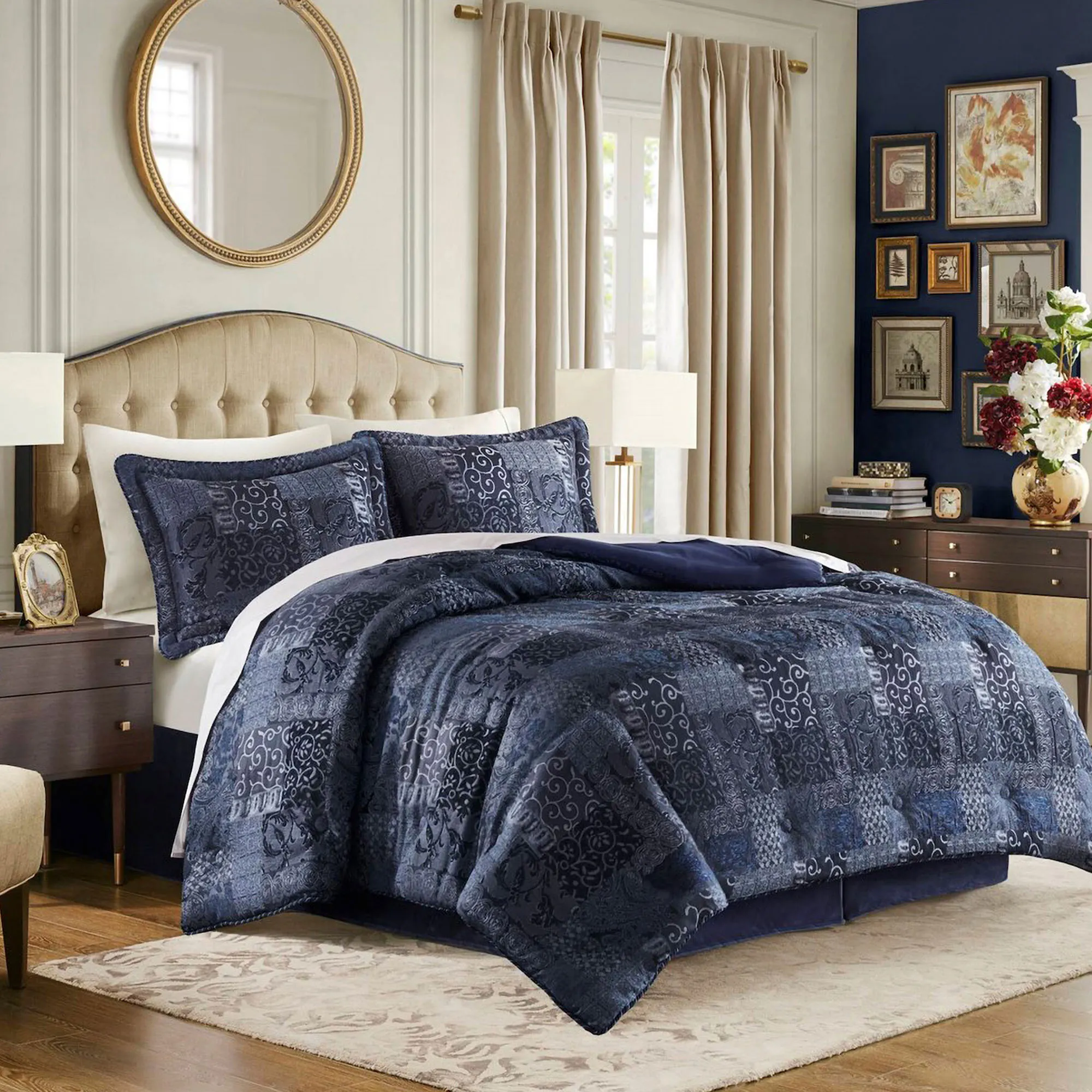 Galleria Navy Blue Woven Jacquard Comforter Set Luxury Bedding by Croscill Classics