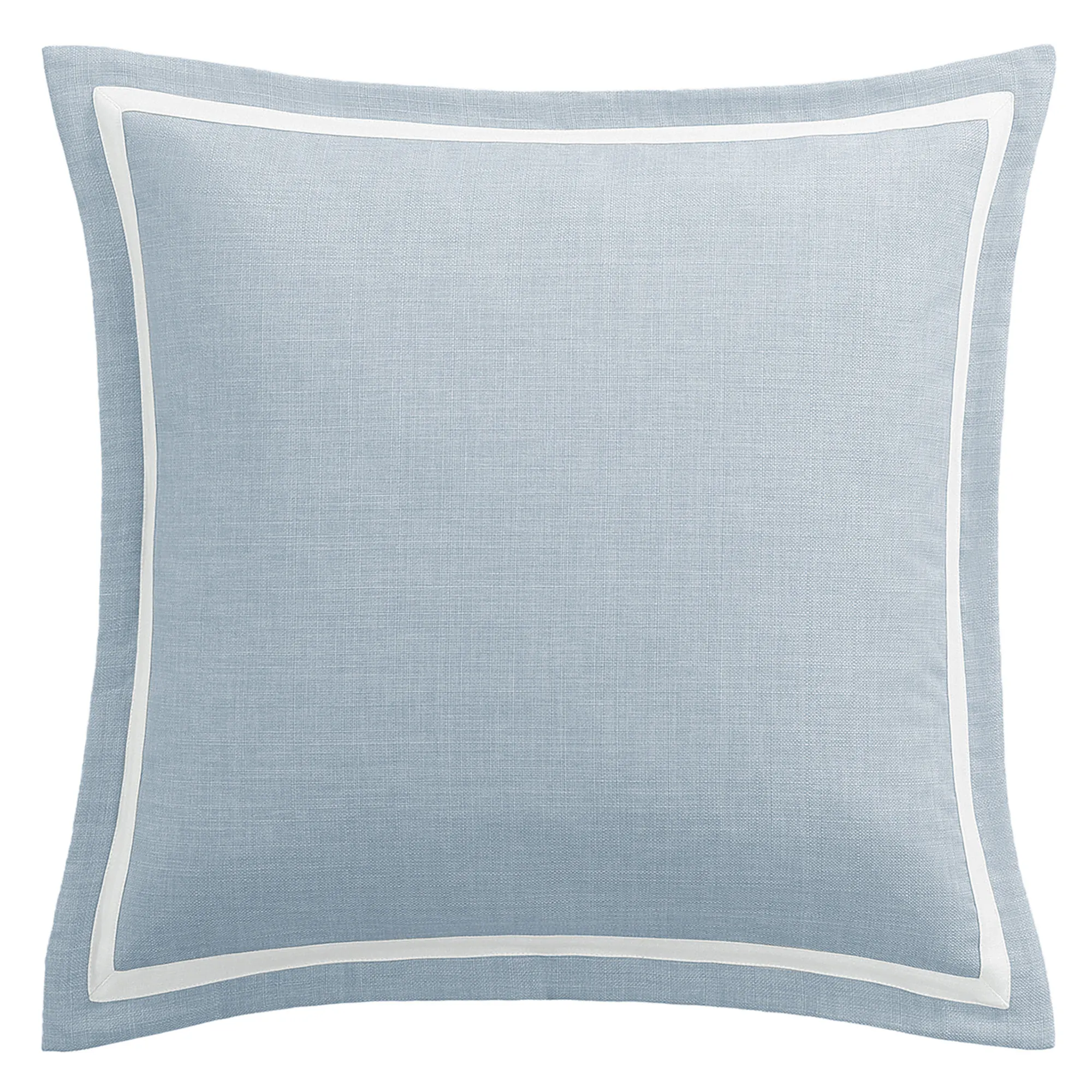The flanged European Sham is chambray blue with an ivory frame; zipper closure.