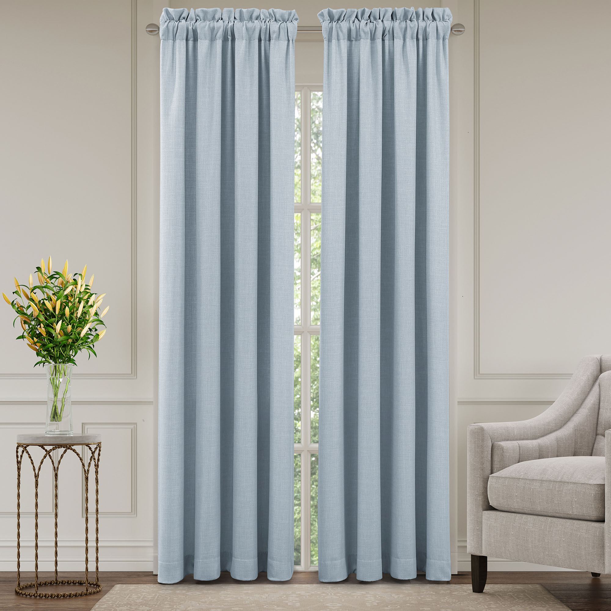Window Treatment: Wide Curtain Pair has a 3" rod pocket and is 100"W; choose 84"L or 95"L. Valance has a 3.25" rod pocket and is 88"Wx21"L.