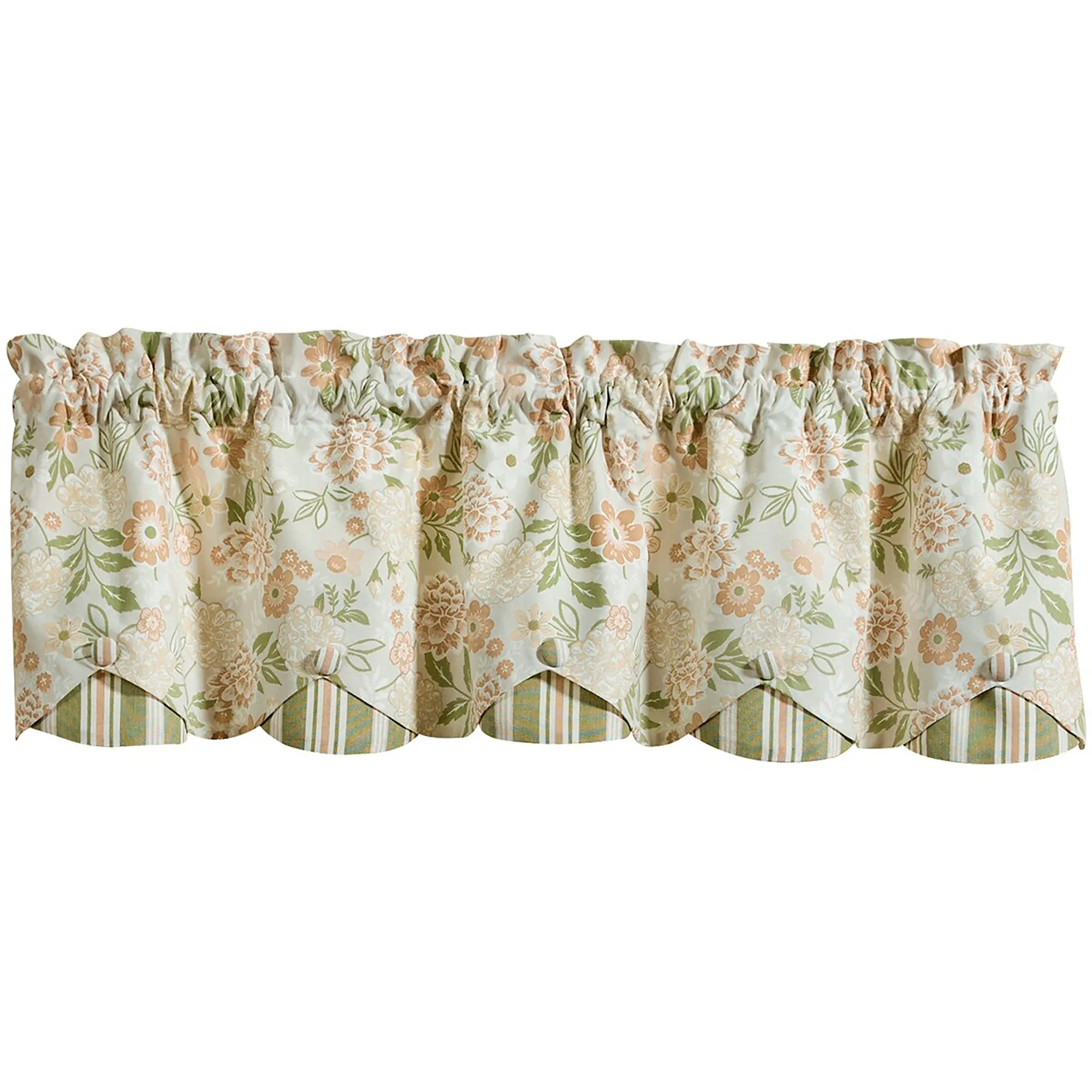 Garden Grace Flower Blossom Cotton Layered Scalloped Window Valance